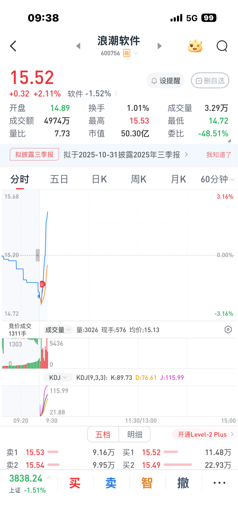 $浪潮软件(SH600756)$ 买少了