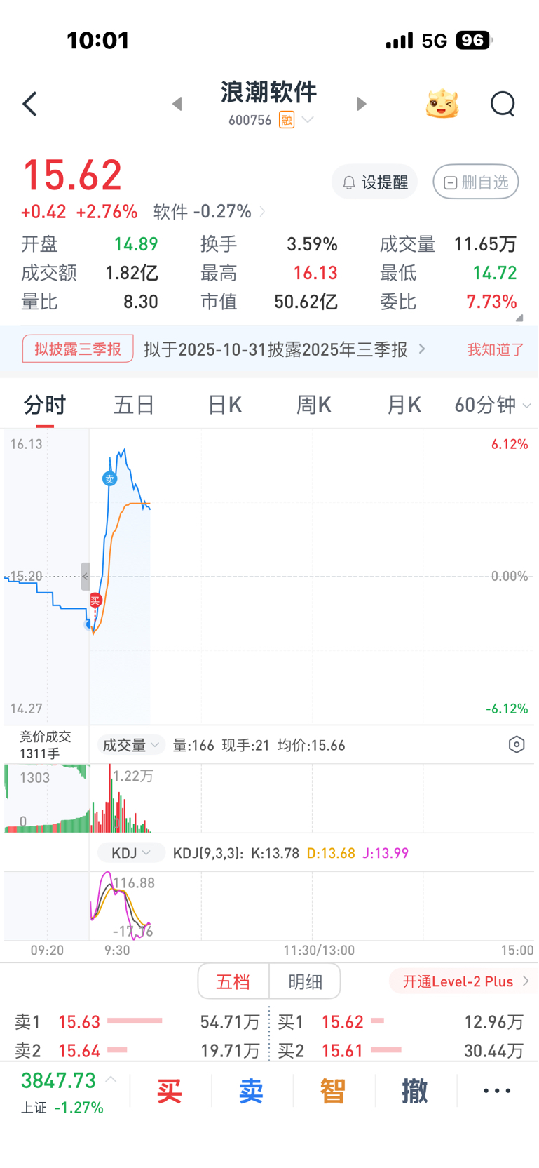 $浪潮软件(SH600756)$ 今天这T做的爽