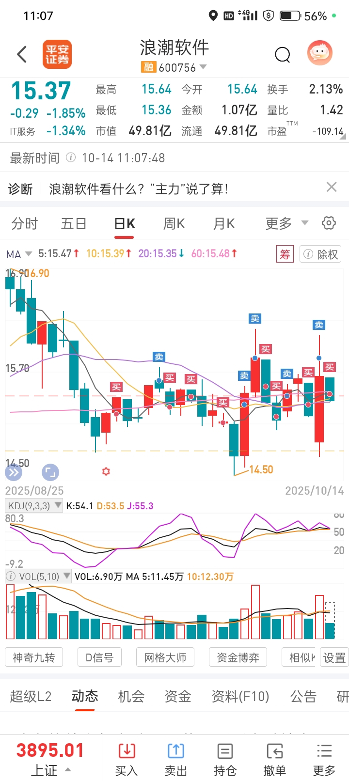 $浪潮软件(SH600756)$ 今天吸点货