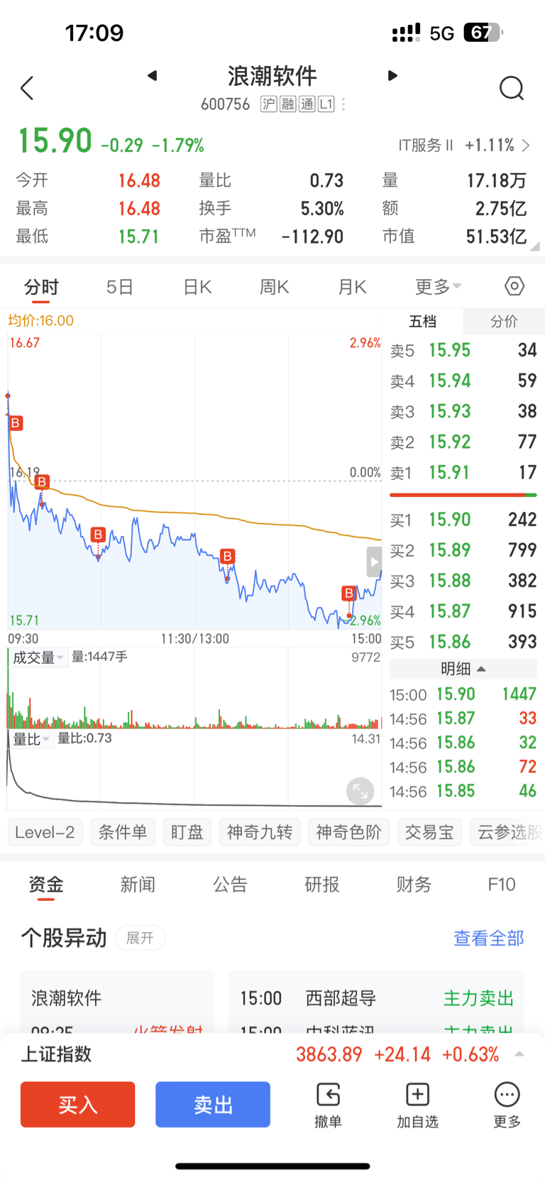 $浪潮软件(SH600756)$ 明天把车子房子老婆全部抵押贷款买