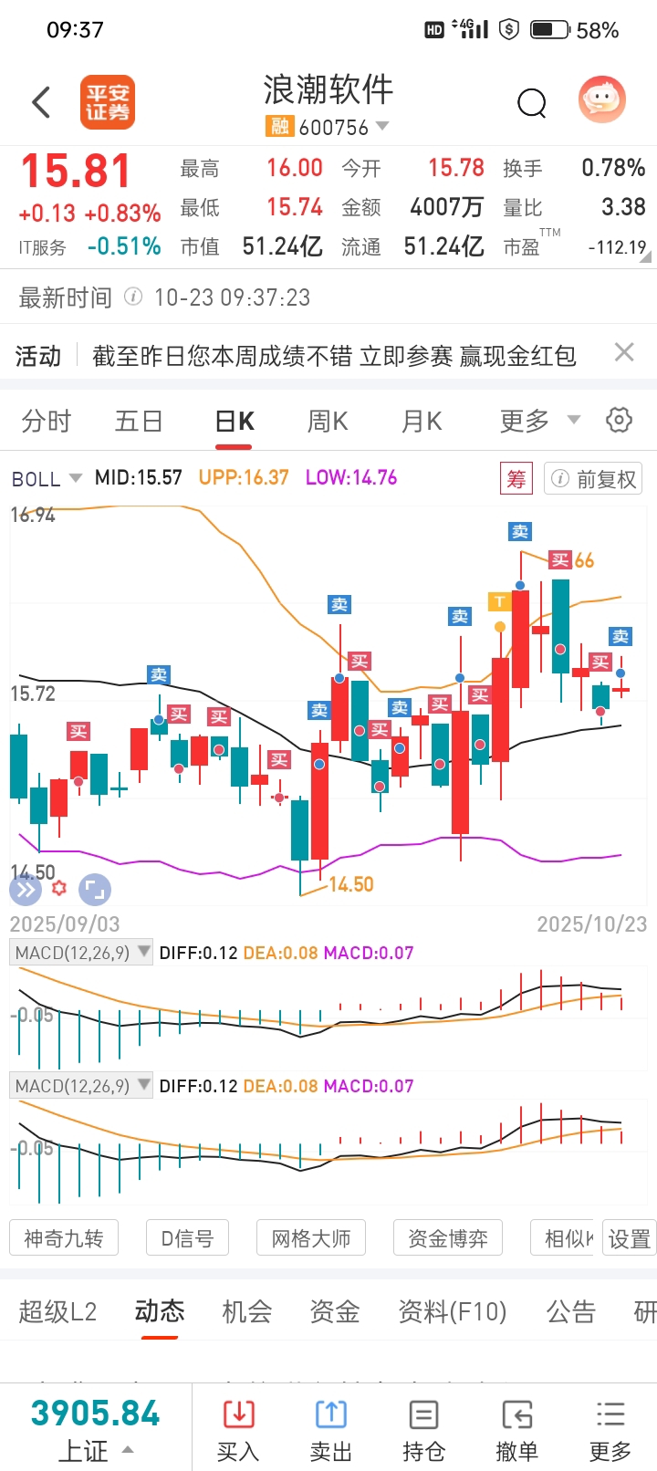 $浪潮软件(SH600756)$ 卖掉昨天加仓的,坐等下跌