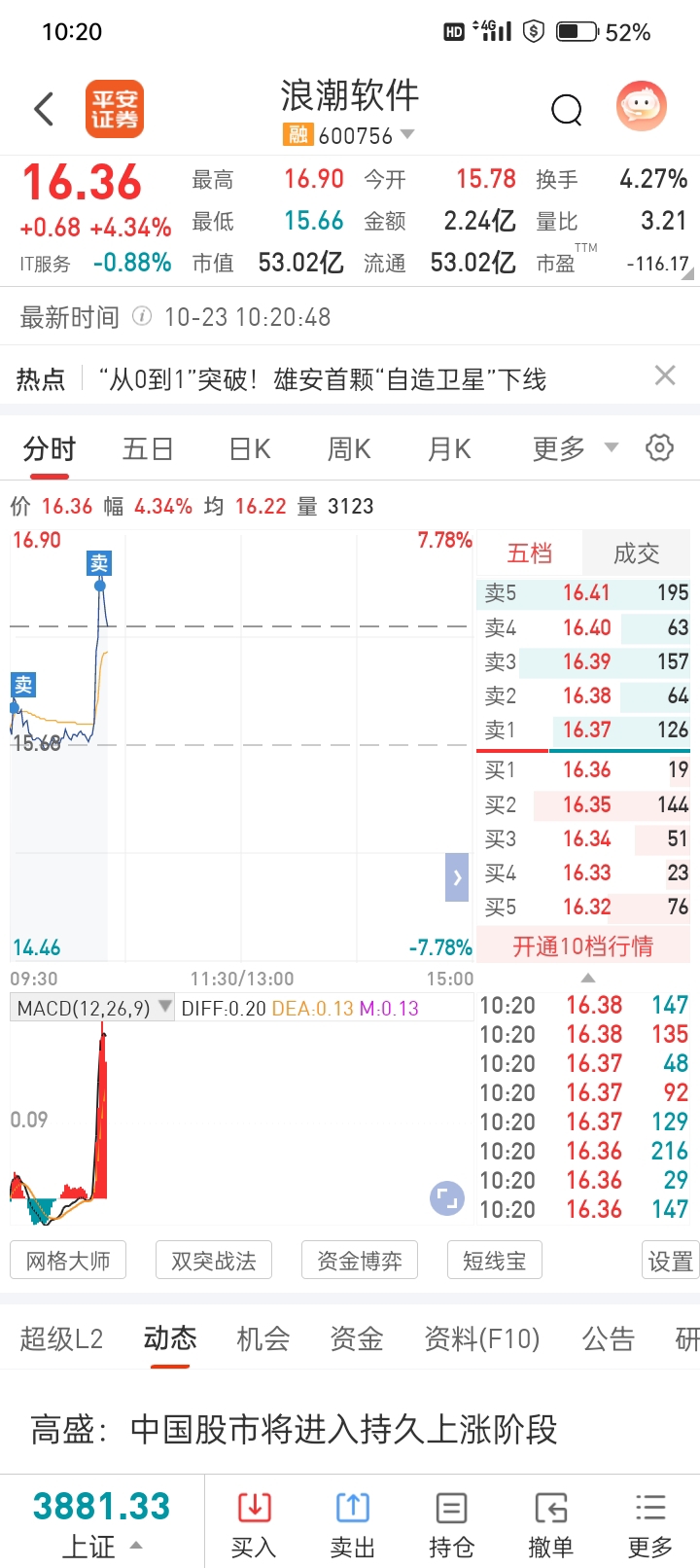 $浪潮软件(SH600756)$ 坐等下跌
