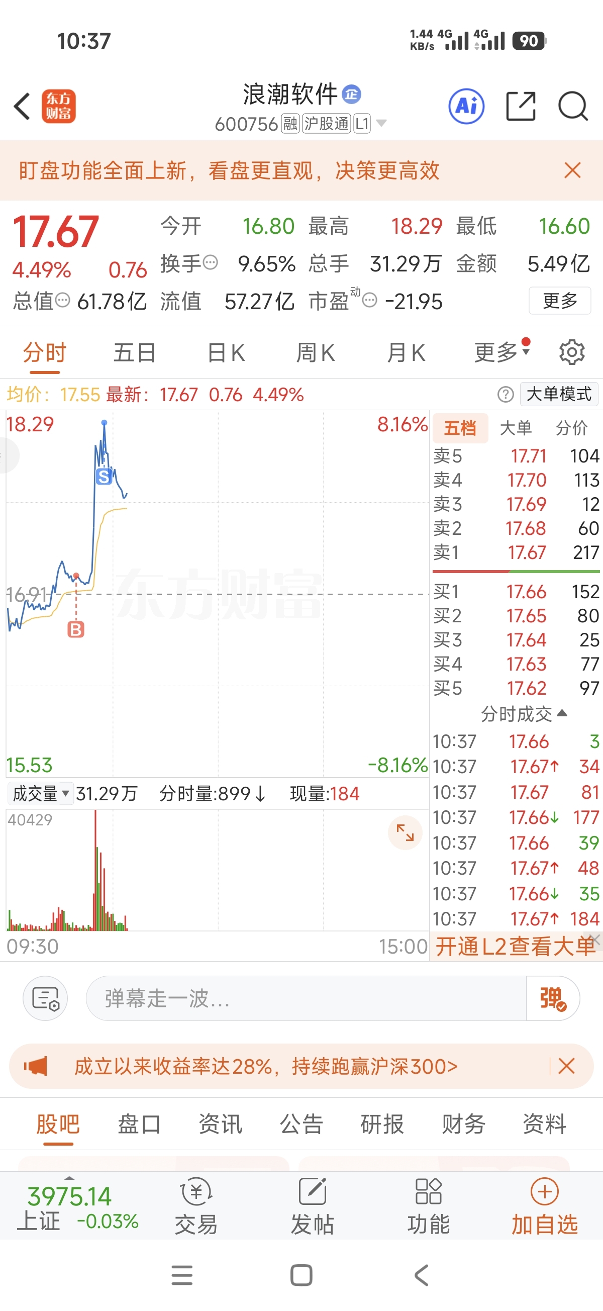 $浪潮软件(SH600756)$ 难道我就是天才??!!