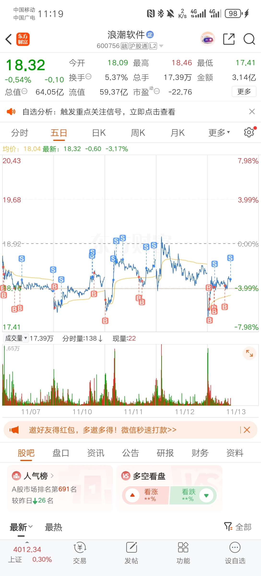 $浪潮软件(SH600756)$ 昨天一天很忙,没做T,今天早上看到17.50等着企稳,等反应过来又起来了,没抢到。哎