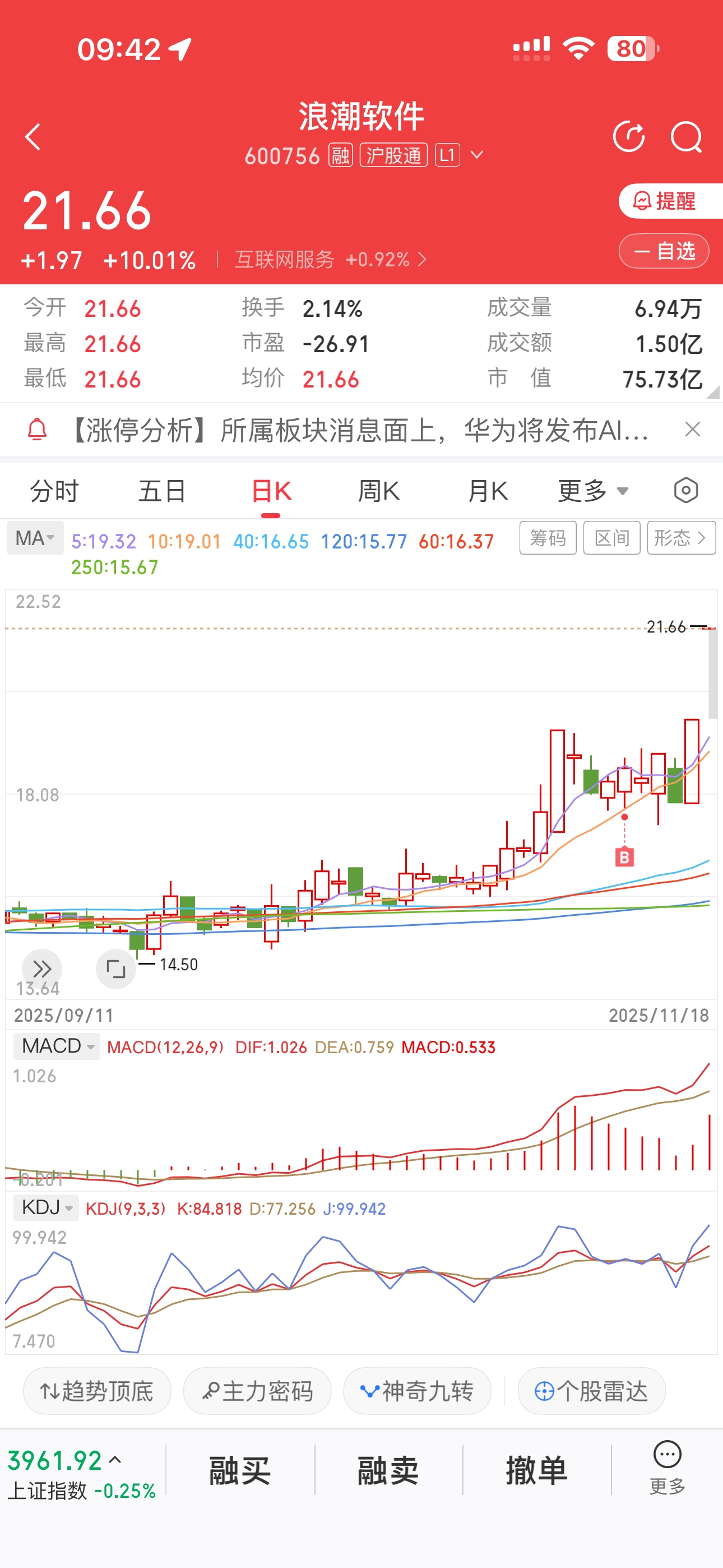 $浪潮软件(SH600756)$ 40万仓位!三连板吃的稳稳的!