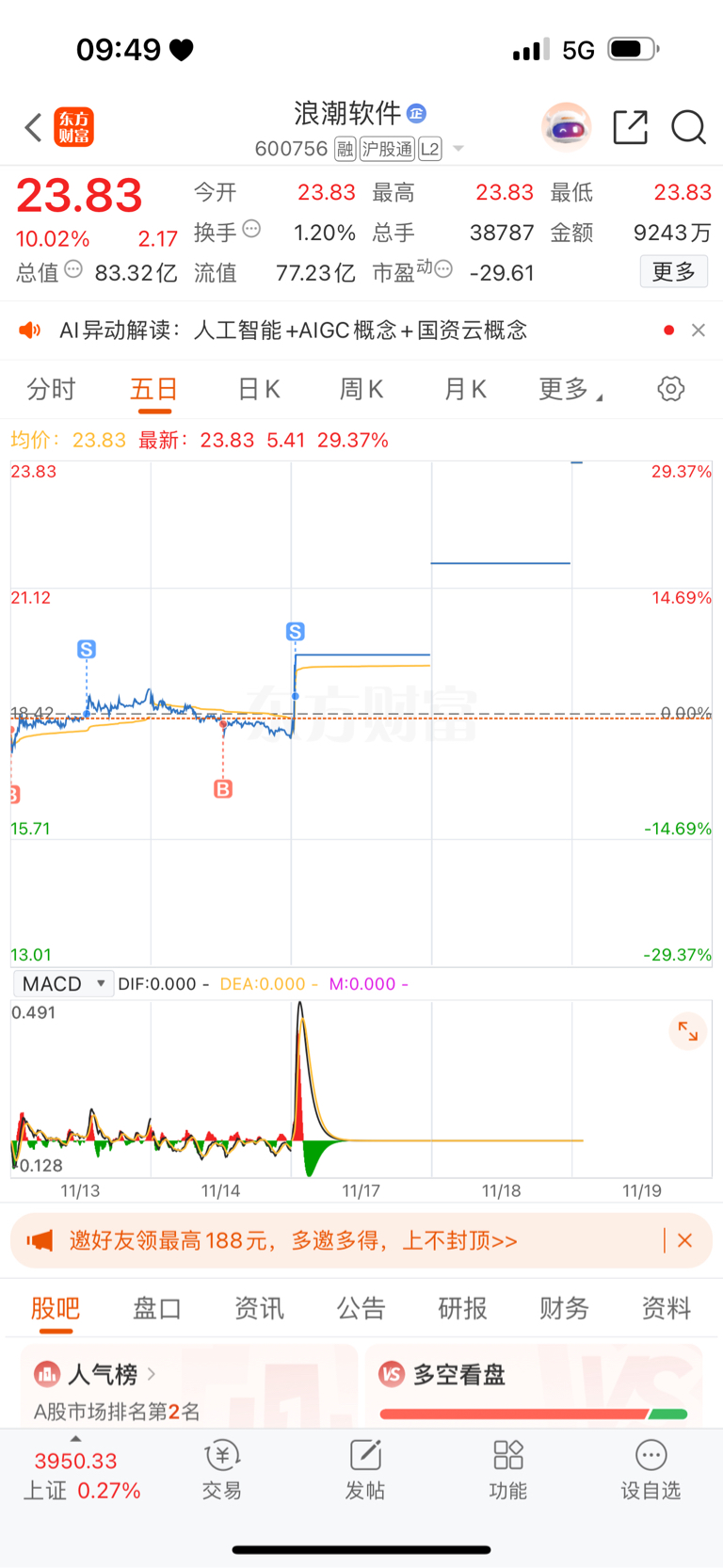 $浪潮软件(SH600756)$ 肠子悔青了咋办,有没有股神指点一下!