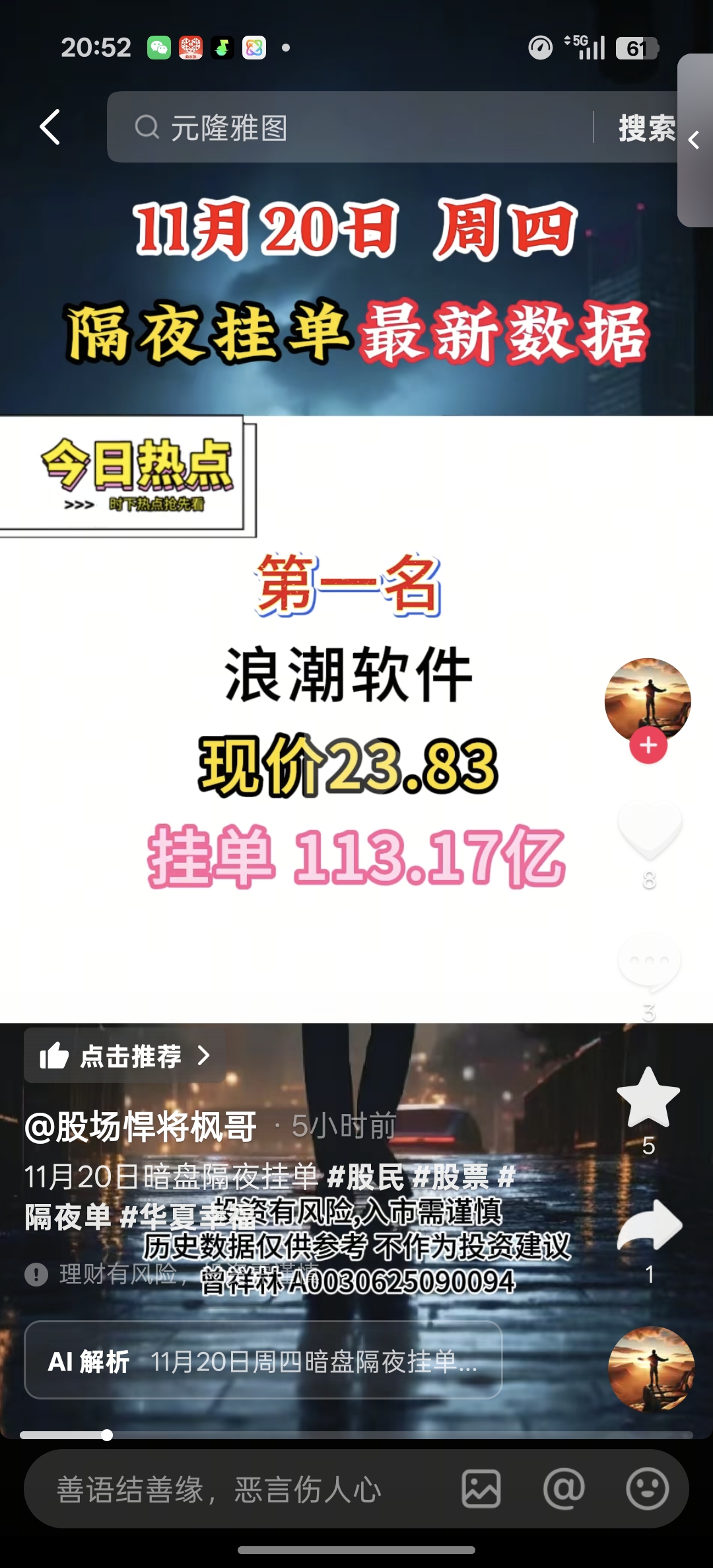$浪潮软件(SH600756)$ 现在已经113亿挂单封板。明天开盘前那不得150亿,这封单资金可以买两个公司。