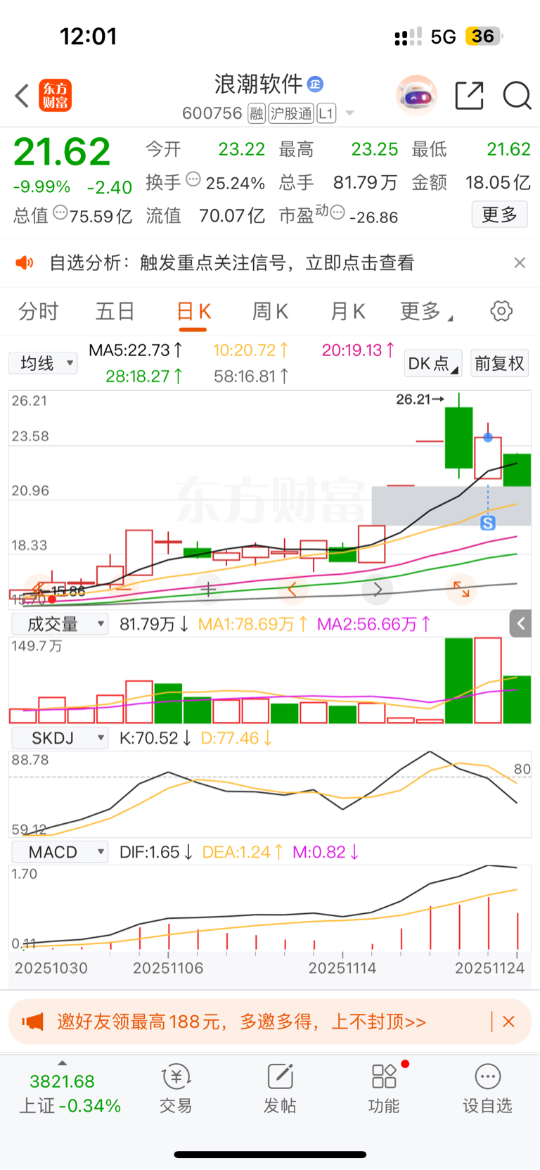 $浪潮软件(SH600756)$ 礼拜五看封板磨磨唧唧,封了又炸开了,怕周一被埋全部清仓.