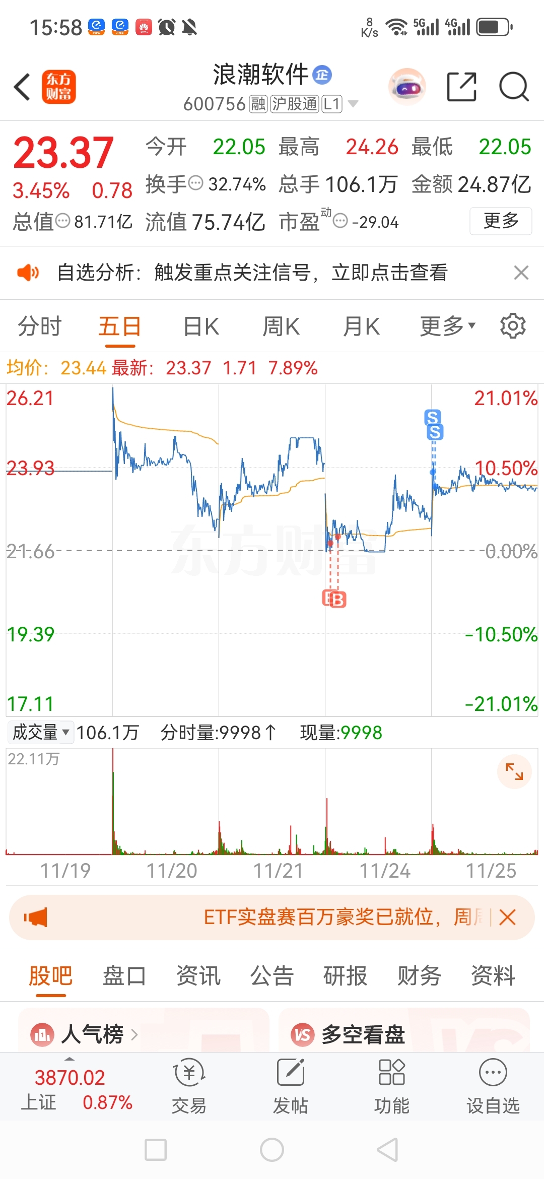 $浪潮软件(SH600756)$ 薅羊毛行情有肉就吃