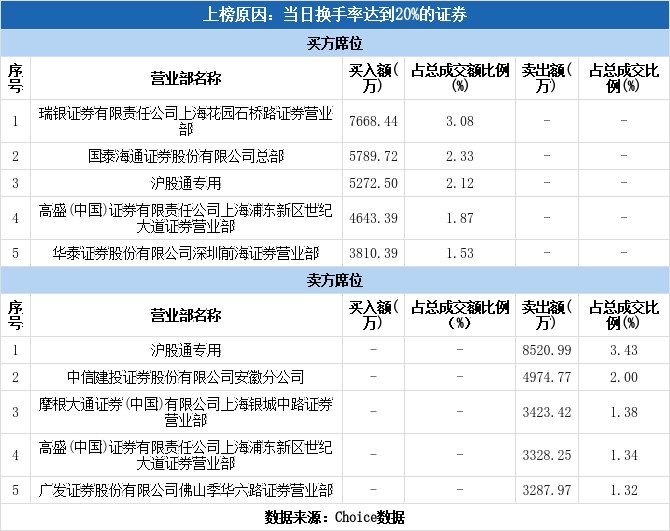 沪股通现身龙虎榜,浪潮软件换手率达32.74%(11-25)