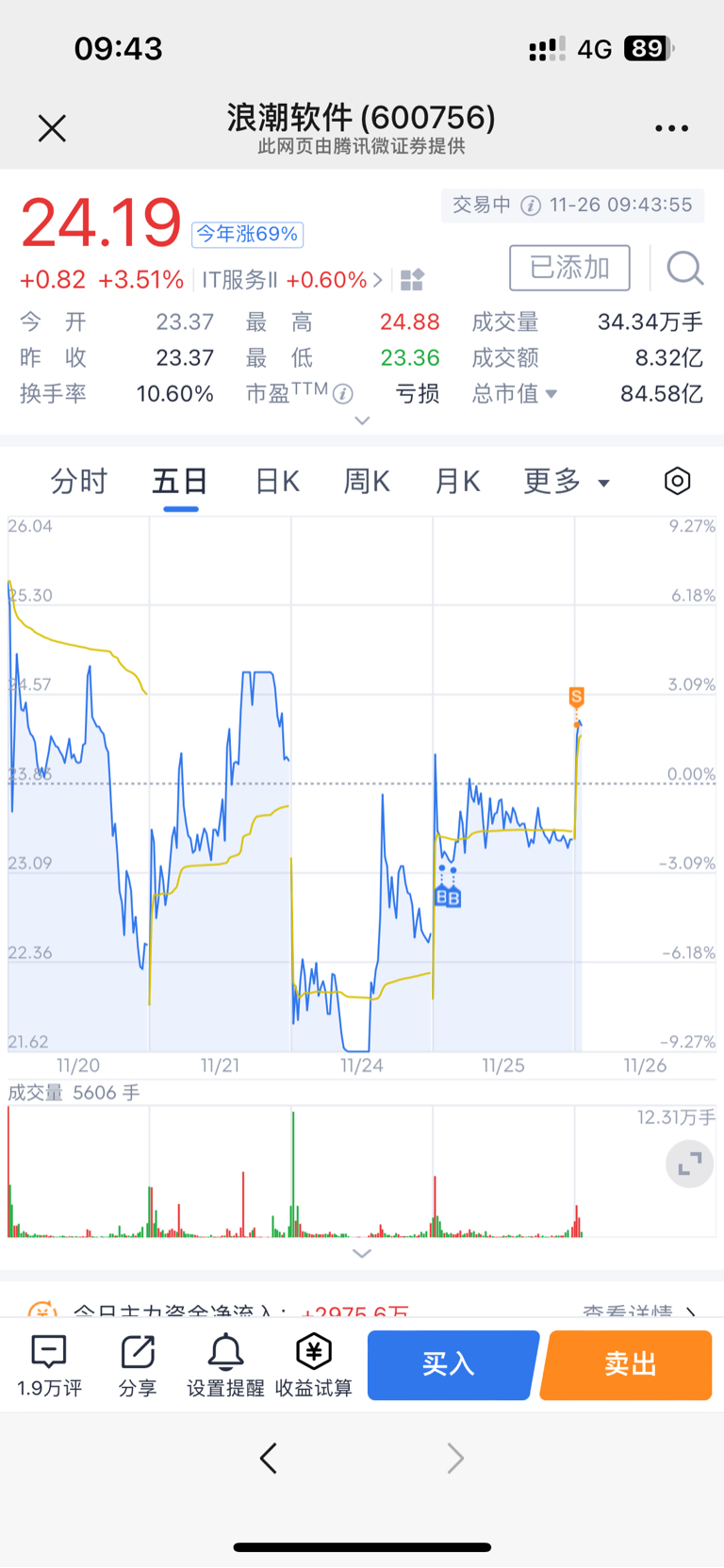 $浪潮软件(SH600756)$ 我不贪心我走了