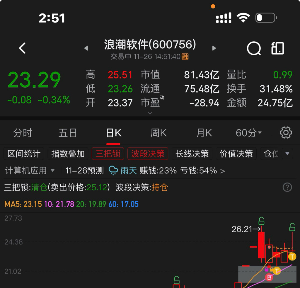 浪潮软件:主力太弱,先撤出来一部分,继续观察!