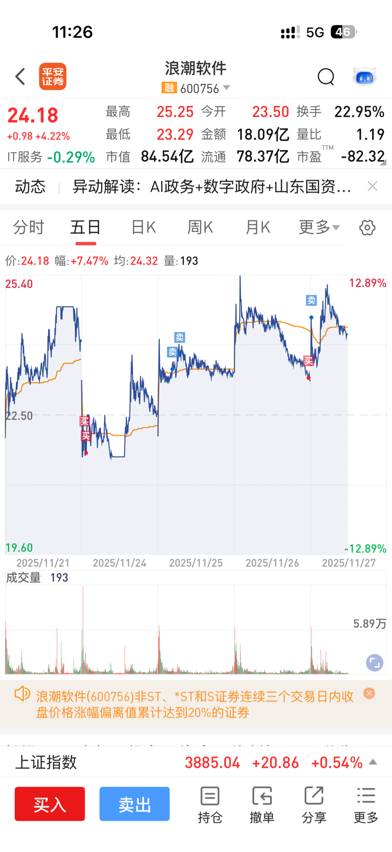 $浪潮软件(SH600756)$ 今天没跟 哭了