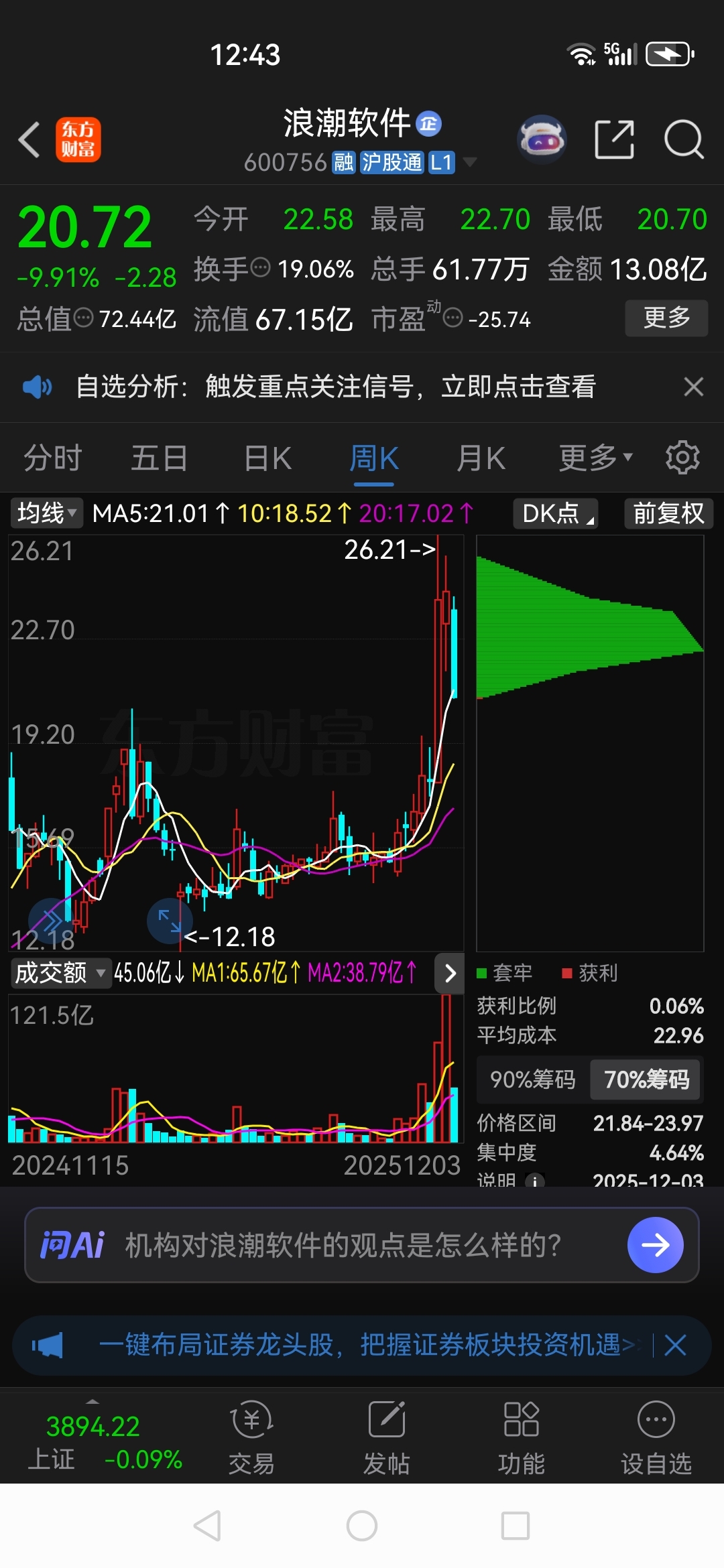 5天弄这么多货,跌破周线21块,你到底要干嘛呢,做好上市公司当股东的心里准备