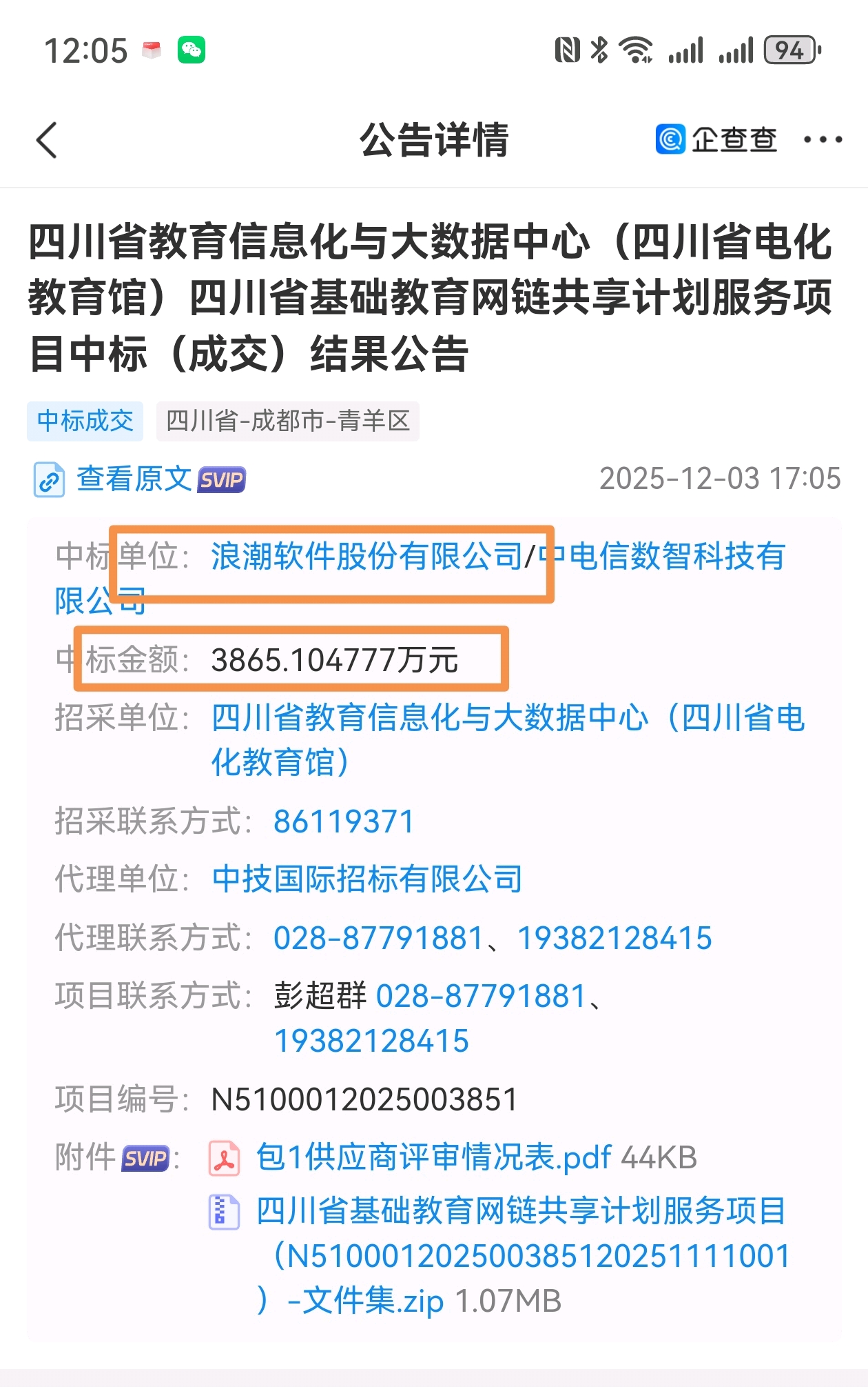 $浪潮软件(SH600756)$ 浪潮中标3800万大额订单