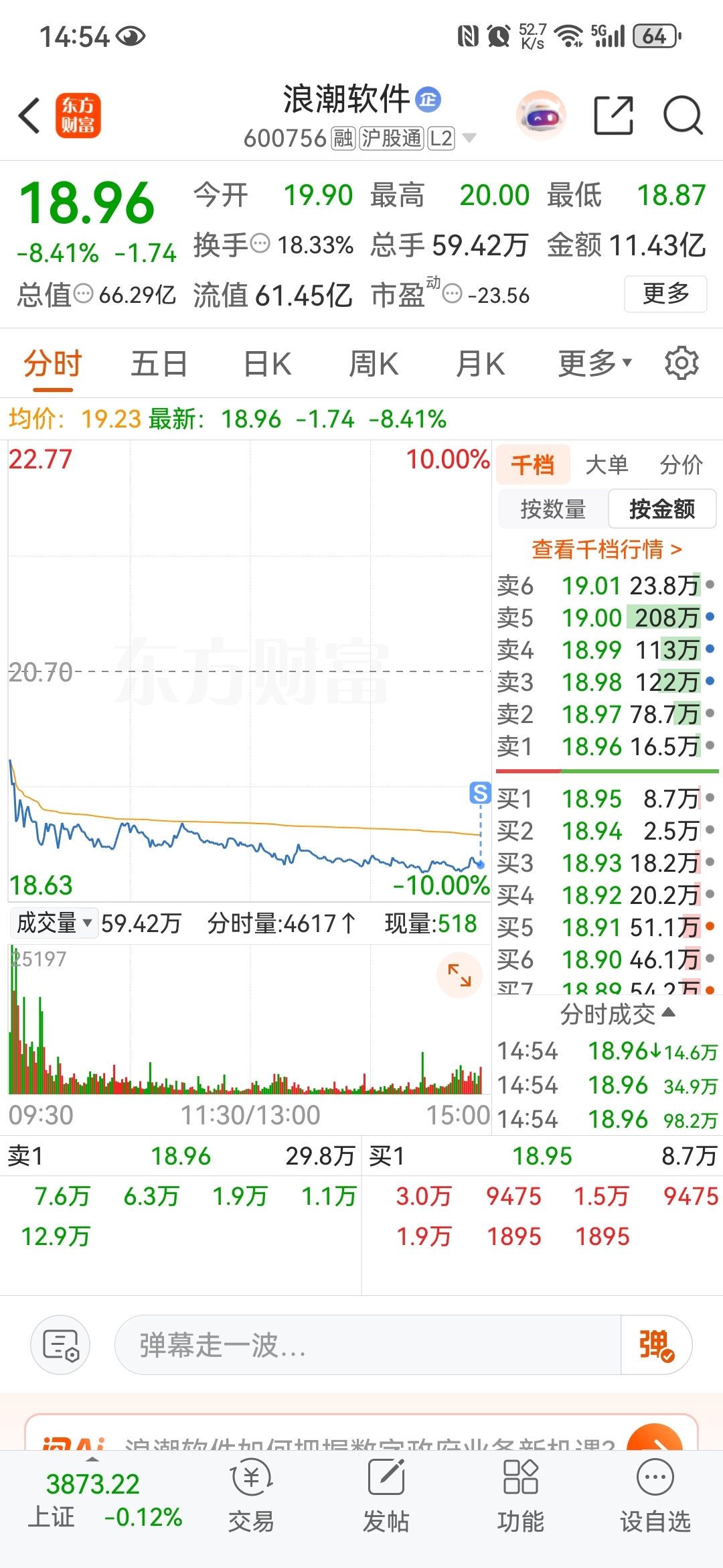 $浪潮软件(SH600756)$ 走了,拉吧