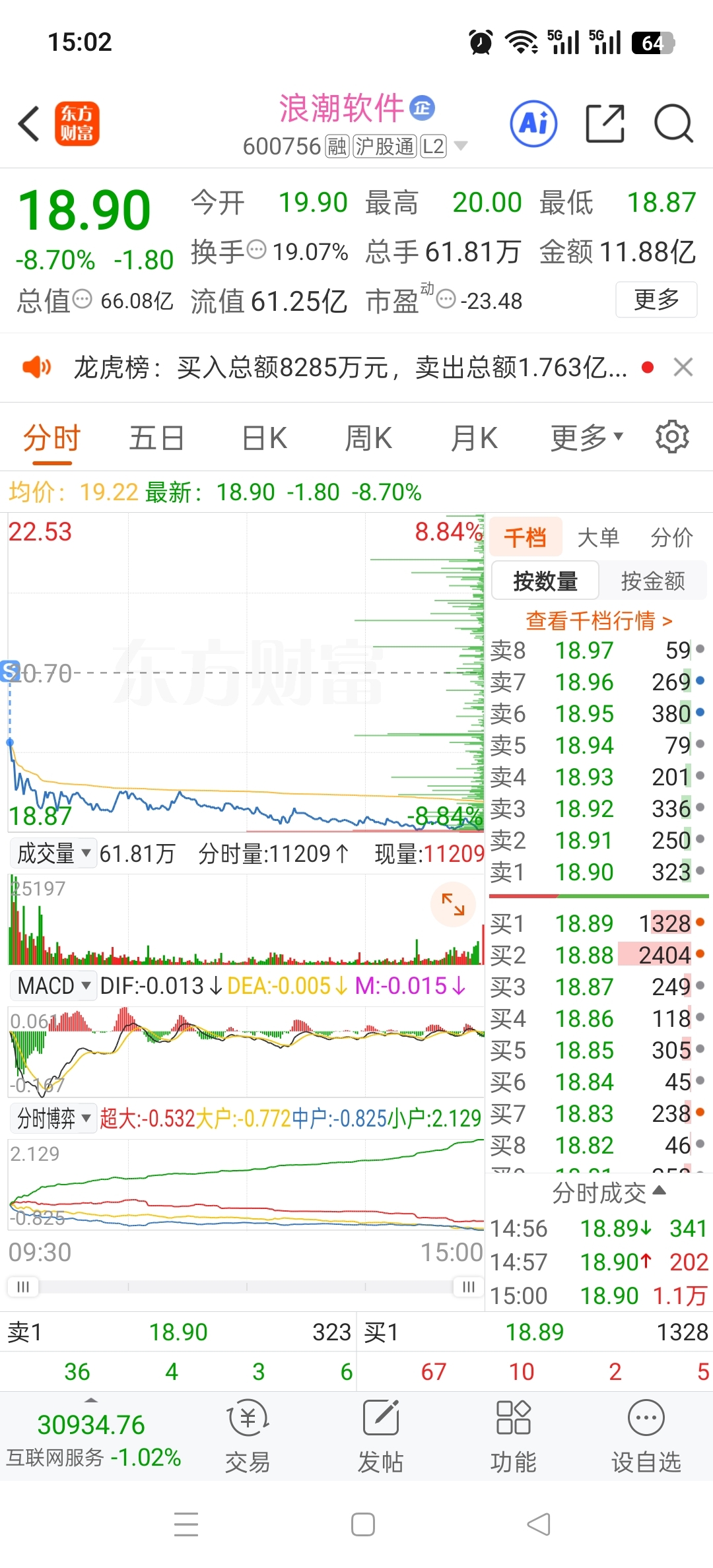 $浪潮软件(SH600756)$ #炒股日记# 集合竞价挂跌停价卖的,昨天地板买的。这种没业绩的票,要少碰。亏了也认。恼火哦