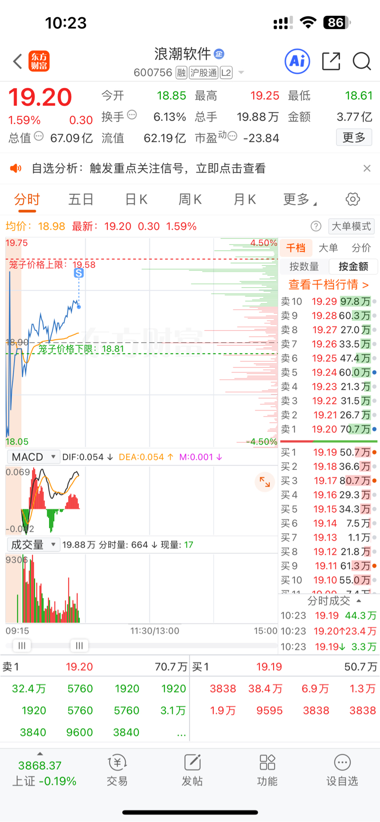 $浪潮软件(SH600756)$ 止损浪潮