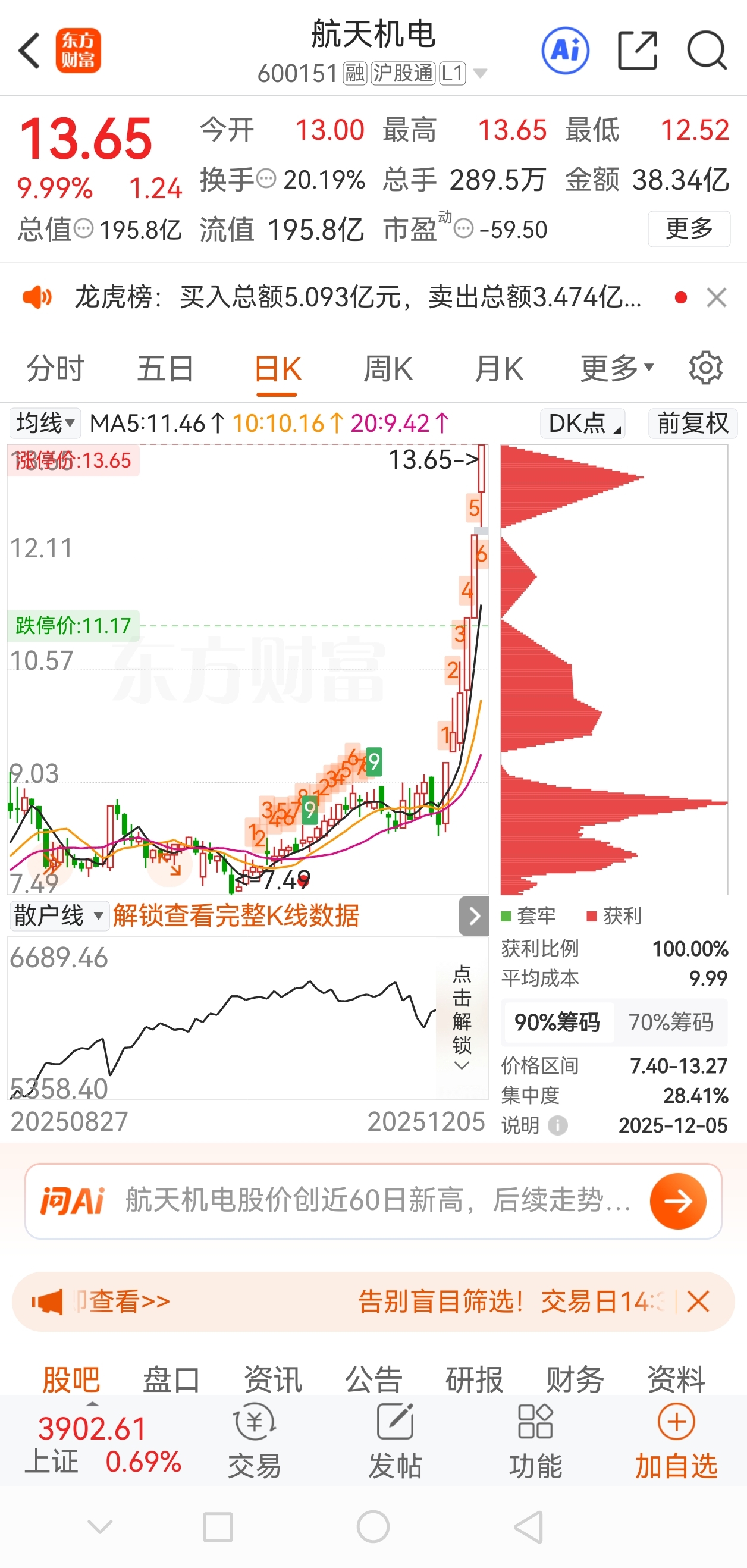 $浪潮软件(SH600756)$ 你看看人家,这个庄有格局啊,全是获利盘