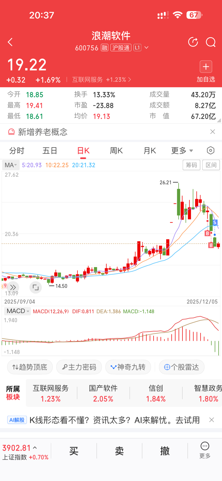 $浪潮软件(SH600756)$ 卖了,割了,留下的发财