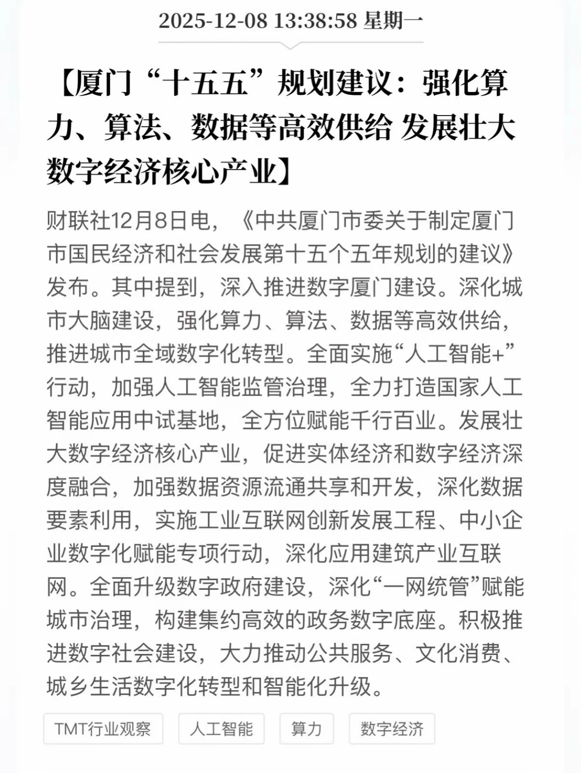 11月份成立厦门灵犀数政软件有限公司。有没有想象空间?还是提前知道了规划内容。福