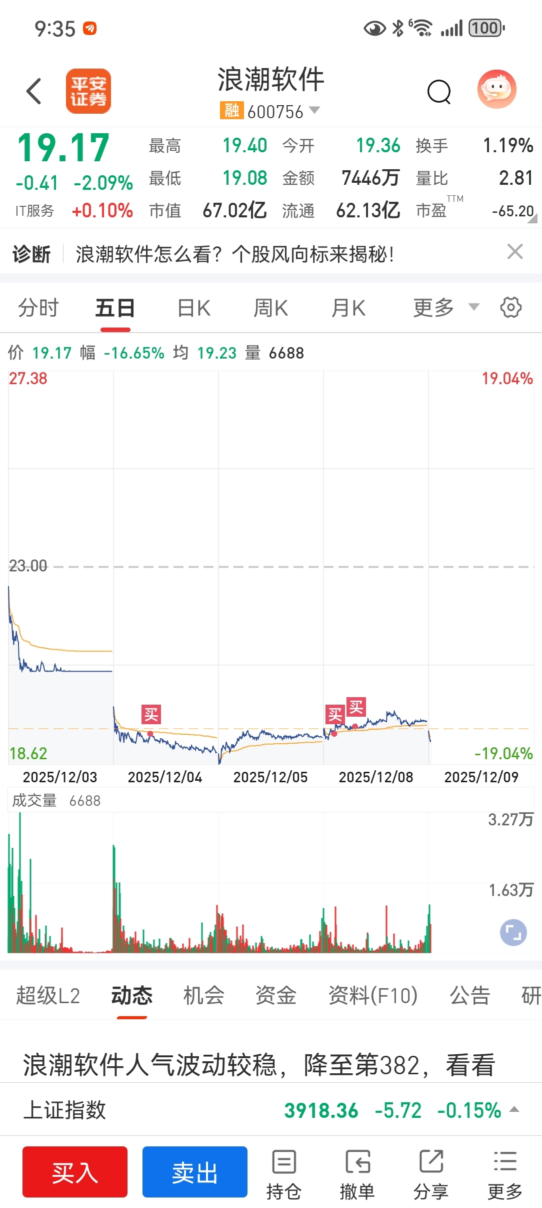 $浪潮软件(SH600756)$ 咋滴,因为我买了???