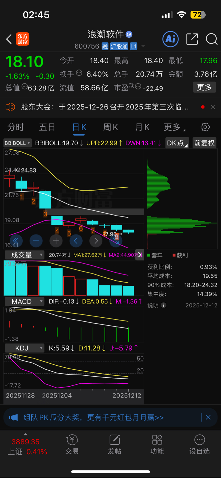 $浪潮软件(SH600756)$ 日k周k月k全都一样,全部是套牢盘