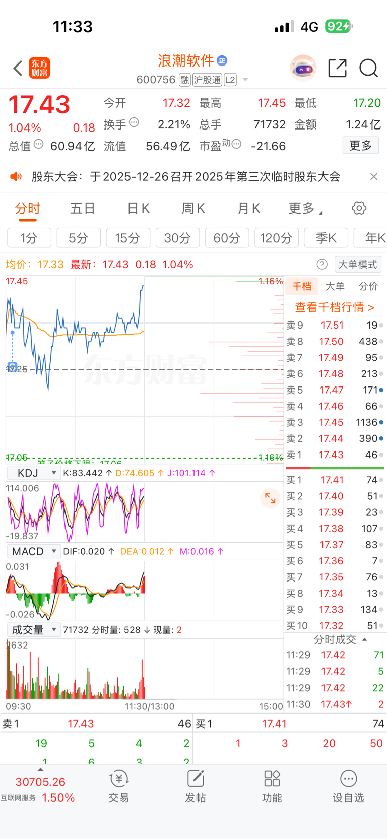 $浪潮软件(SH600756)$ 牛逼!一卖就飞!