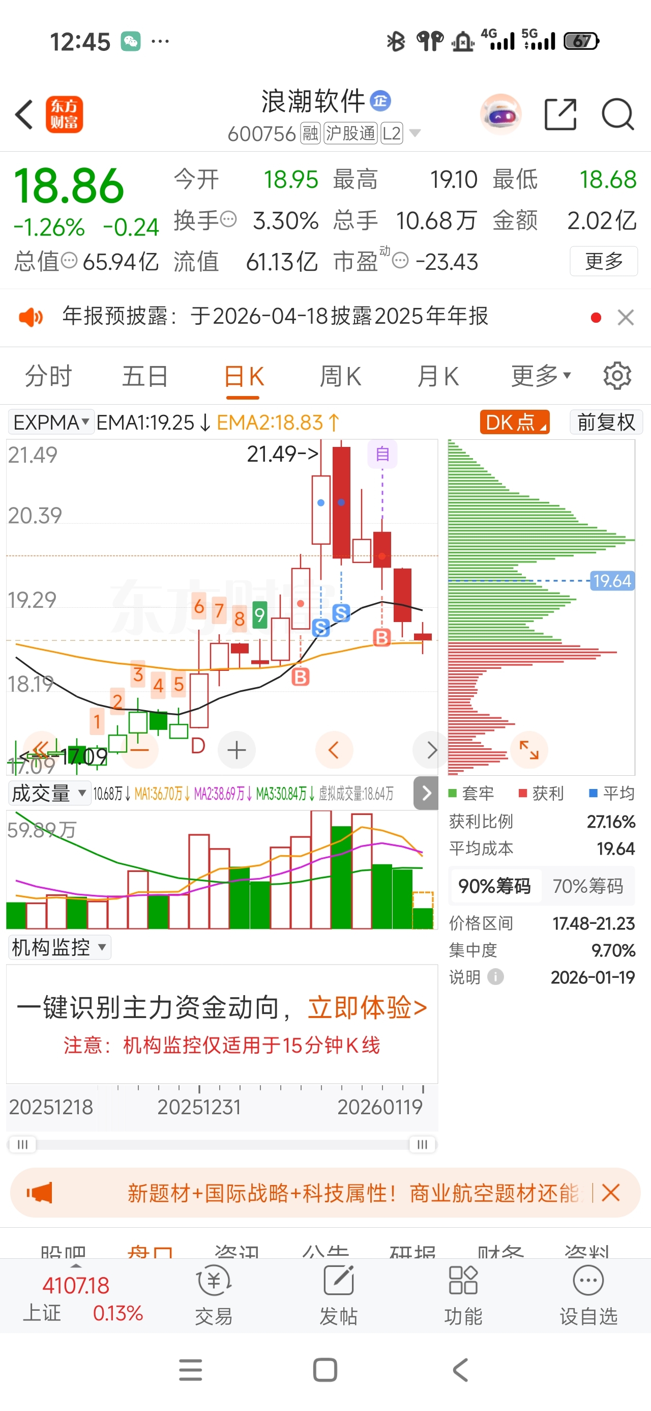 $浪潮软件(SH600756)$ 按道理18.80大支撑位可以补一下,但是还是小心为妙,企稳再说吧,轻仓即可。