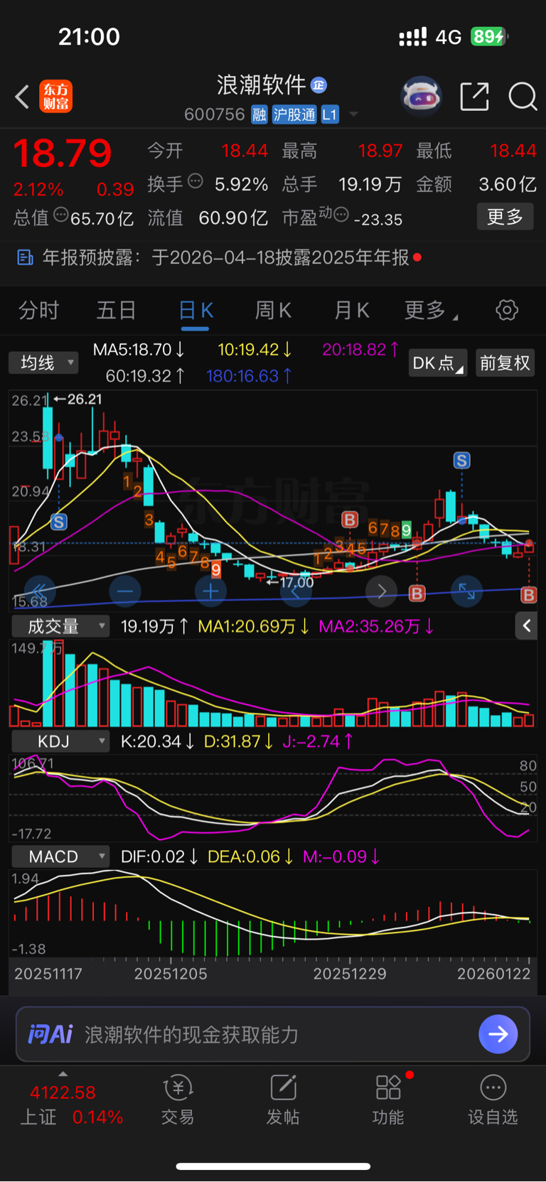 $浪潮软件(SH600756)$ 看到22,今天建仓过十日线再加一笔.自选里的福星票.