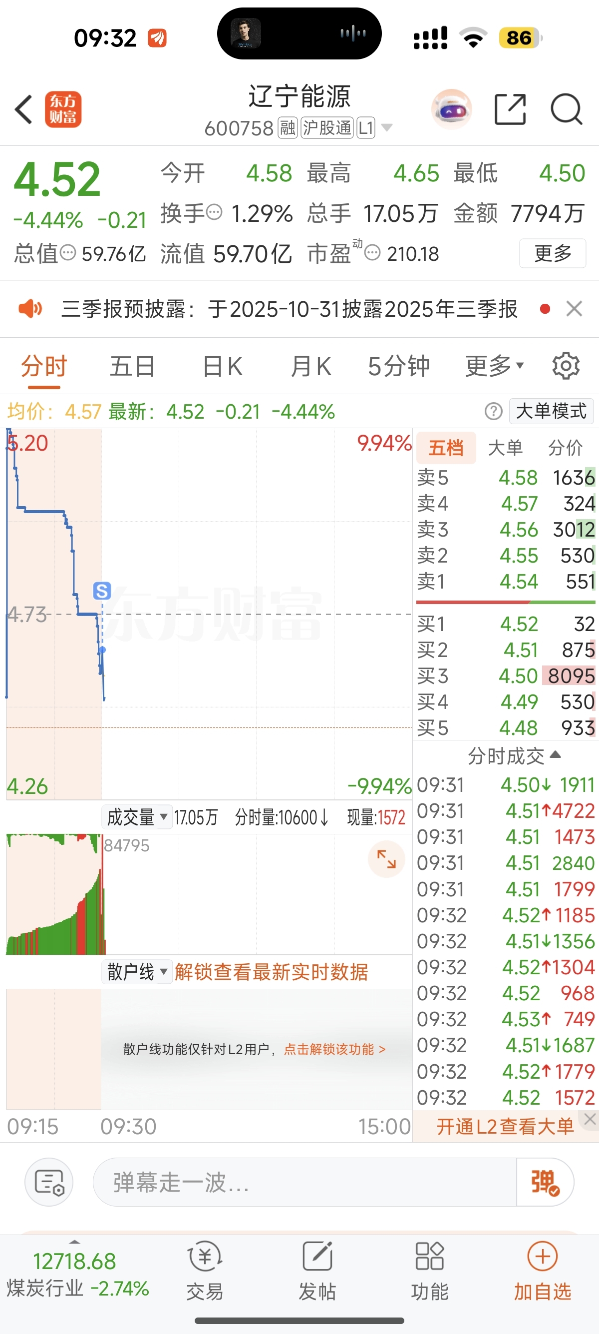 $辽宁能源(SH600758)$ 4.64先走了,去有色了