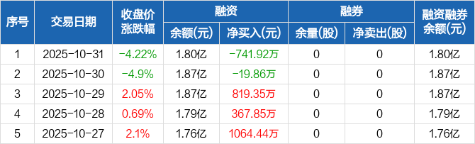 辽宁能源:融资净偿还741.92万元,融资余额1.8亿元(10-31)