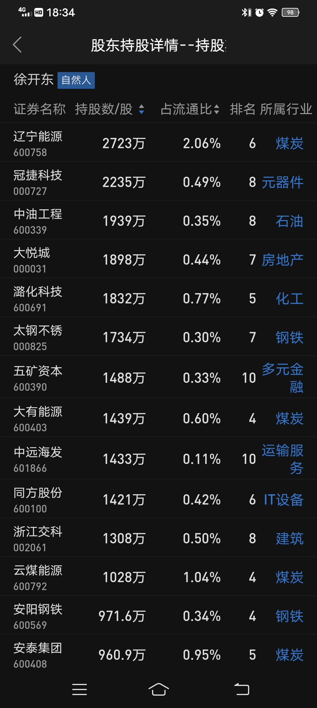 $辽宁能源(SH600758)$ 徐开东建仓的票,我来给你整理出来,不谢哈