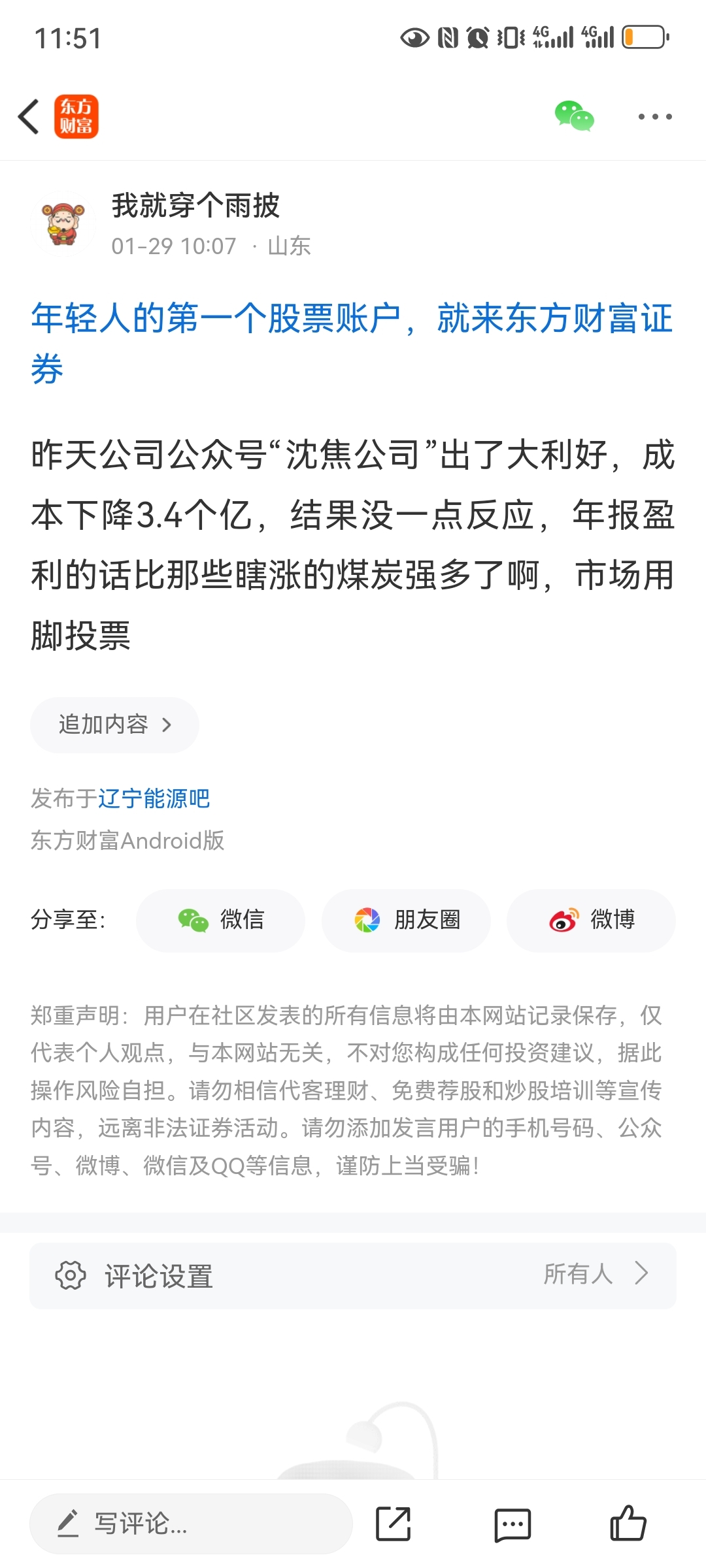 温馨提示: 1.根据《证券法》规定,禁止编造、传播虚假信息或者误导性信息,扰乱证券市场;2.用户在本社区发表的所有资料、言论等仅代表个人观点,与本网站立场无关,不对您构成任何投资建议。用户应基于自己的独立判断,自行决定证券投资并承担相应风险。《东方财富社区管理规定》