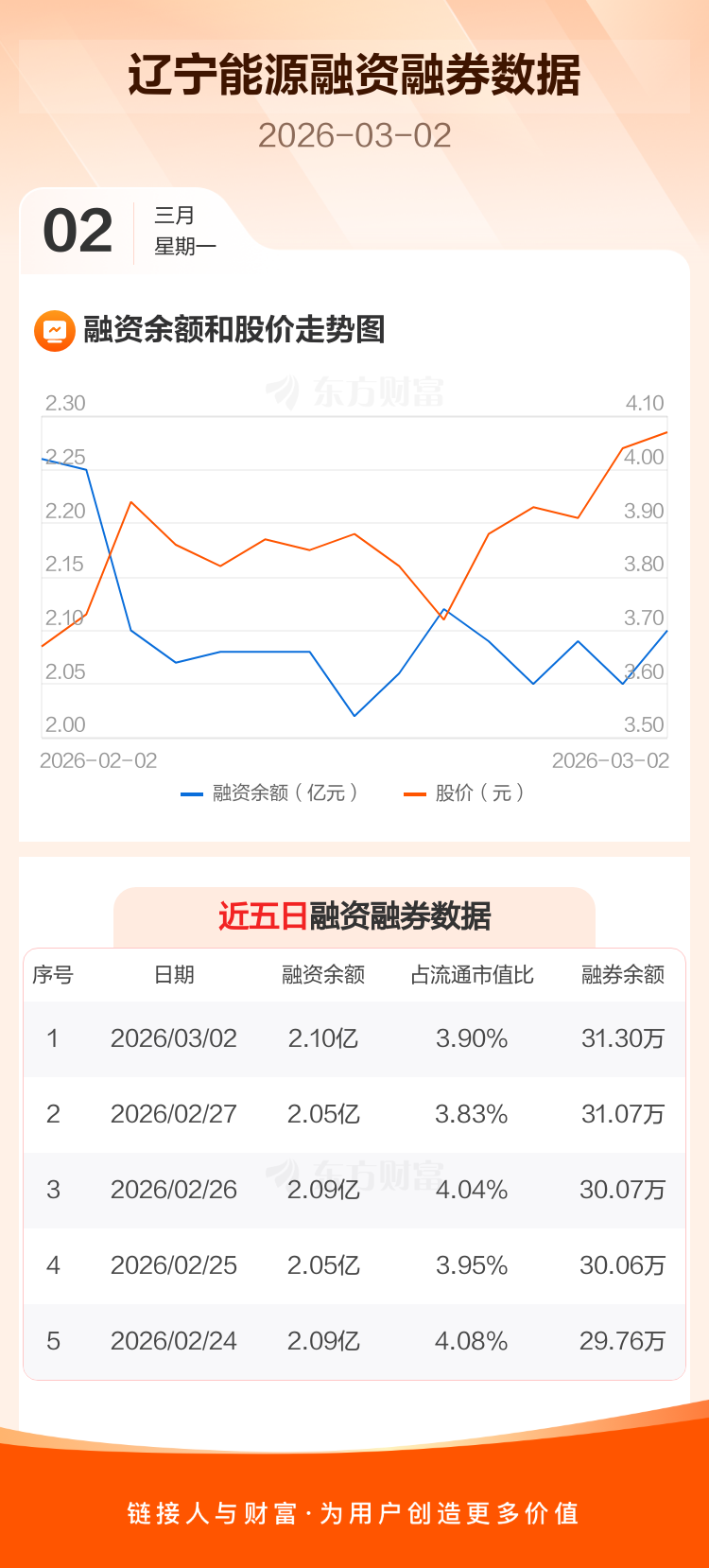 交易所最新数据显示,辽宁能源于2026年3月2日获融资买入2115.64万元,融资偿还1596.99万元,当日融资净买入518.65万元。目前,该股融资余额2.10亿,占流通市值比例为3.90%。