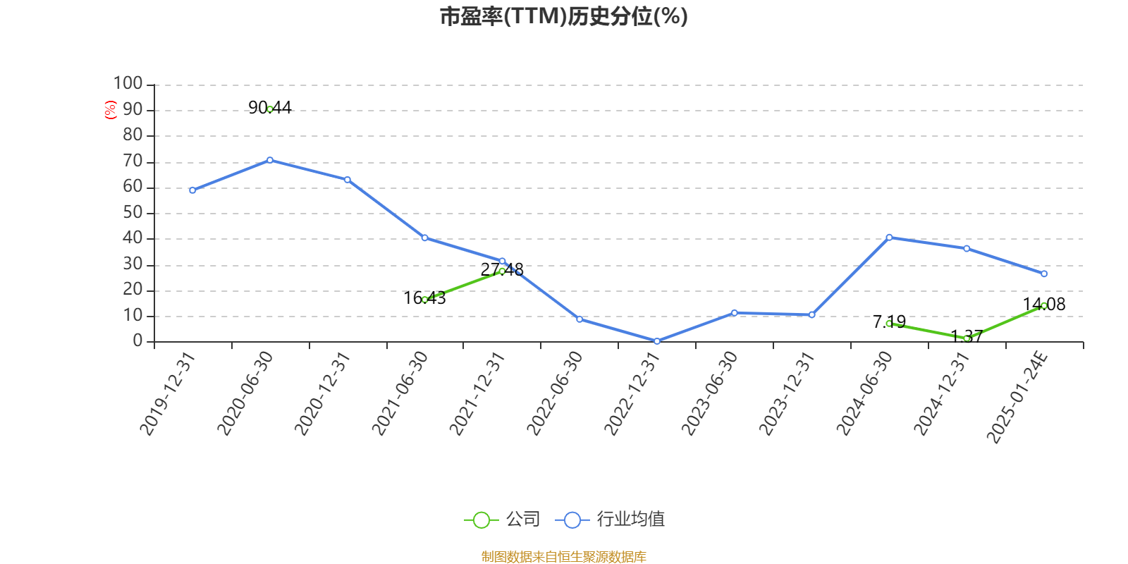 市盈率、市净率为负时,不显示当期分位数,会导致折线图中断。