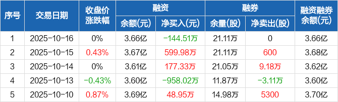 洲际油气:融资净偿还144.51万元,融资余额3.66亿元(10-16)