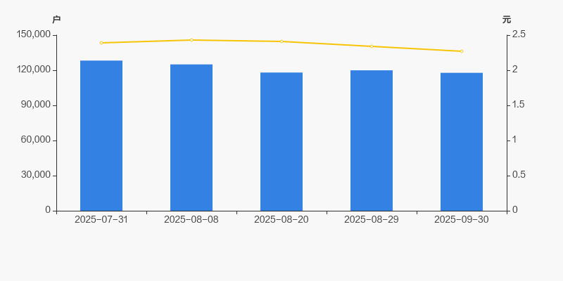 2025年7月31日至今,公司股东户数有所下降,区间跌幅为8.14%。2025年7月31日至2025年9月30日区间股价下降5.02%。
