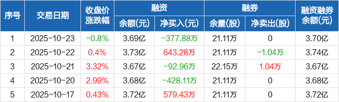 洲际油气:融资净偿还377.88万元,融资余额3.69亿元(10-23)