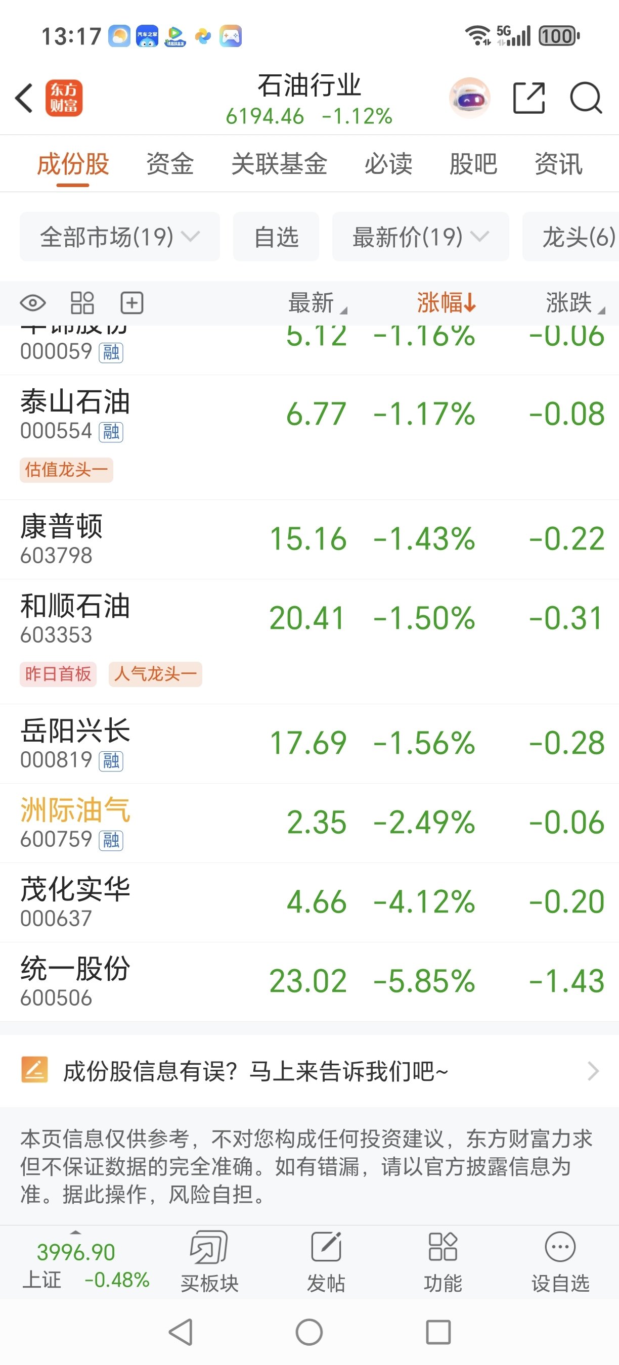 $洲际油气(SH600759)$ 涨跌都是倒数后三名