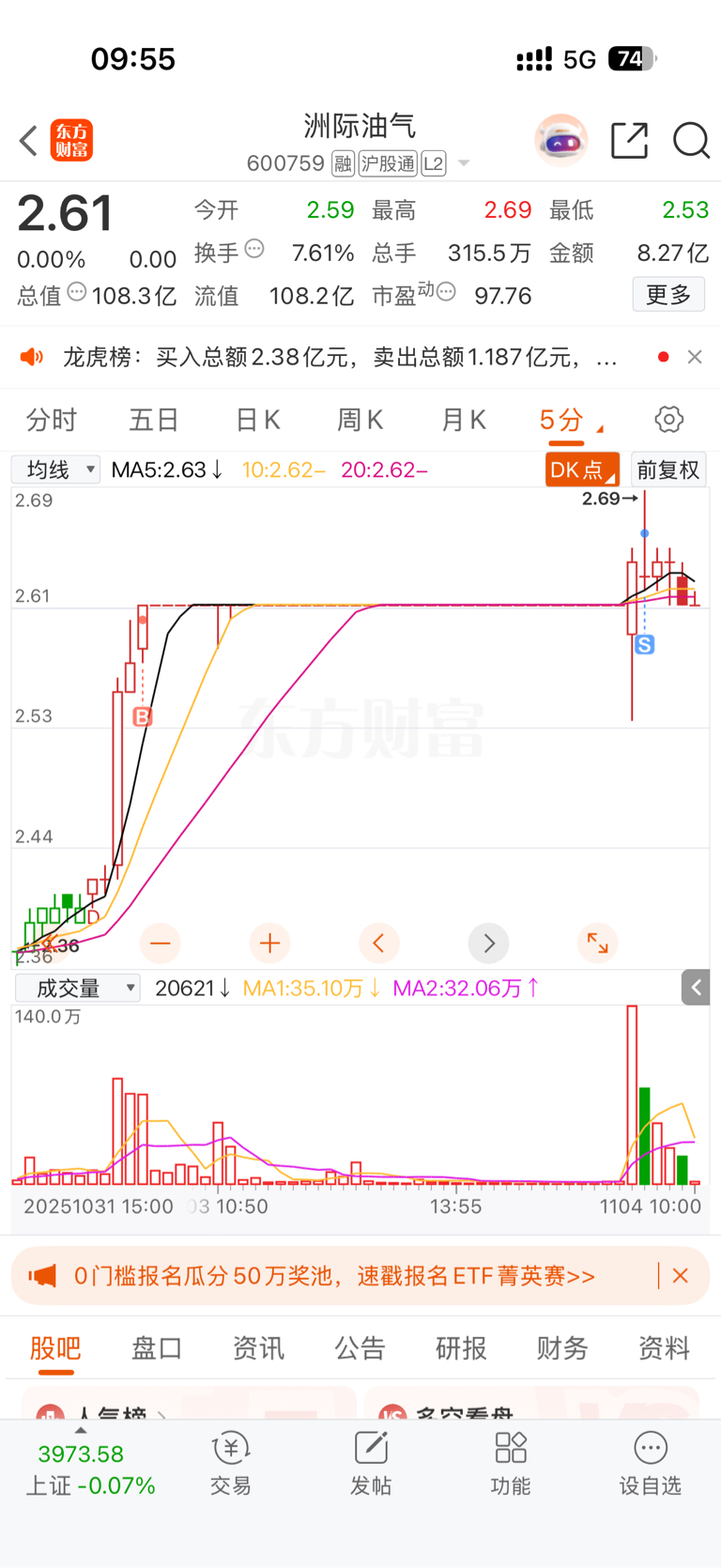$洲际油气(SH600759)$ 昨天扫板2000手,今天2%出掉,晚上吃顿牛肉火锅