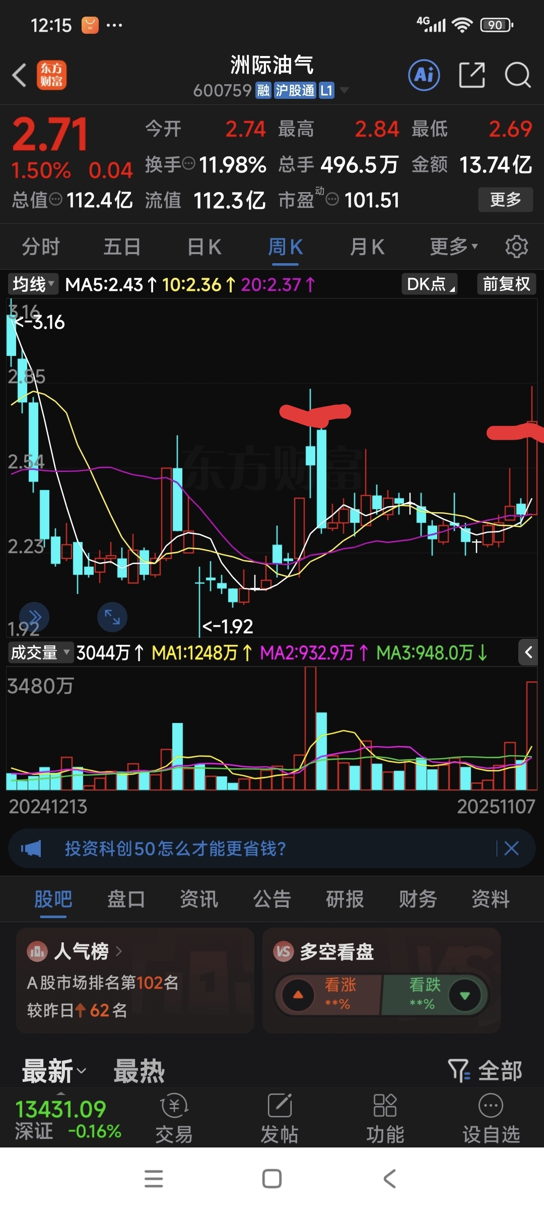 $洲际油气(SH600759)$ 周线双顶!逢高坚决减仓出来!