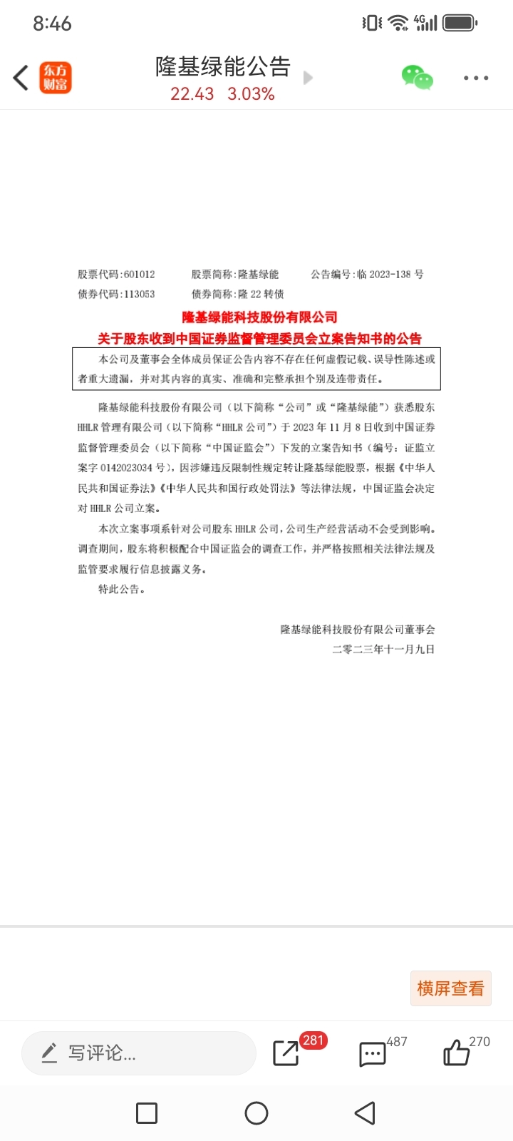 同类对股东违规立案的事,第二天一样涨的股。不知道你们担心什么,,一个增持过百分之五举牌没停住,,就像你们自己有钱买买买买,,过百分之五就是不停,,立案最多处罚点小钱。和公司没关系。这种增持举牌是不能卖出的。百分之百利好。