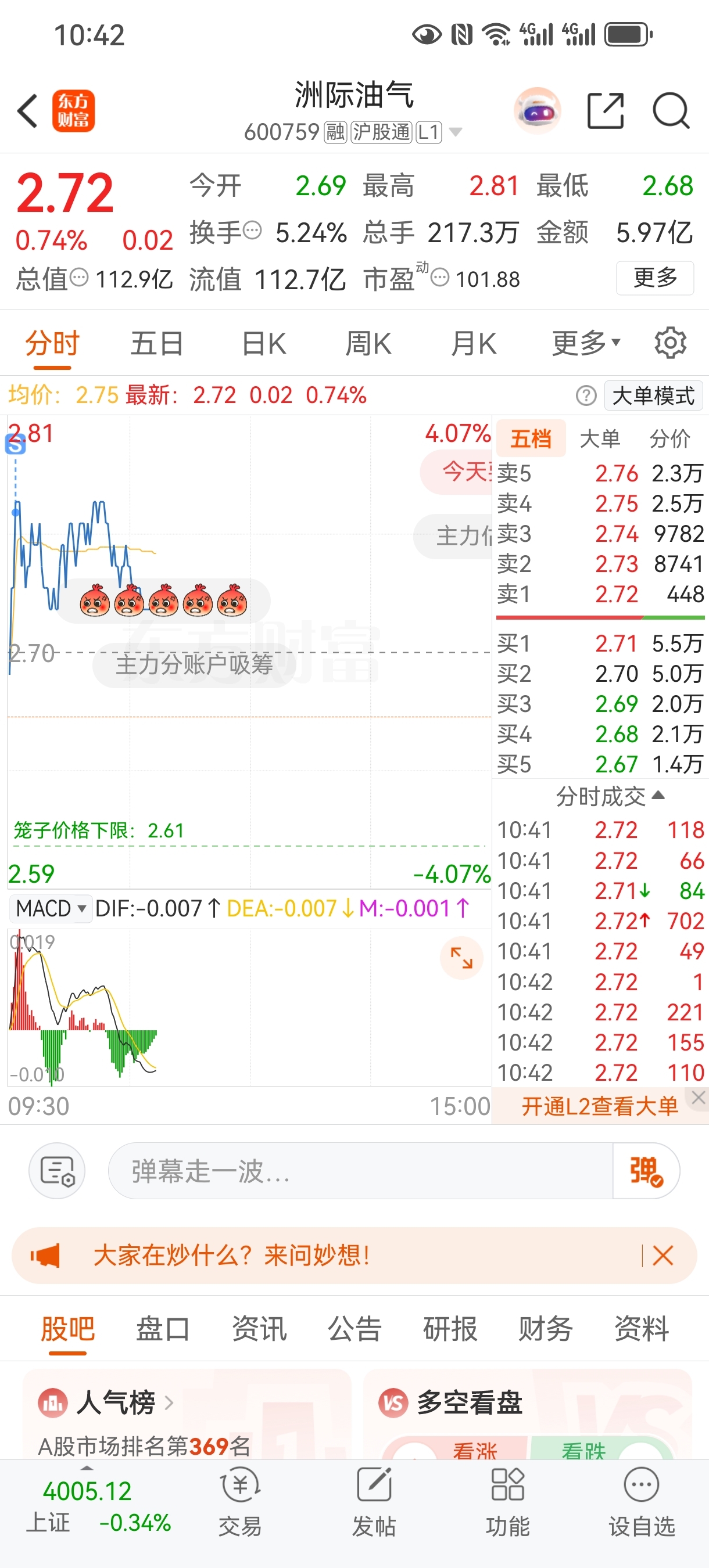 $洲际油气(SH600759)$ 昨天买今天卖,主力孙子们你奈我何。
