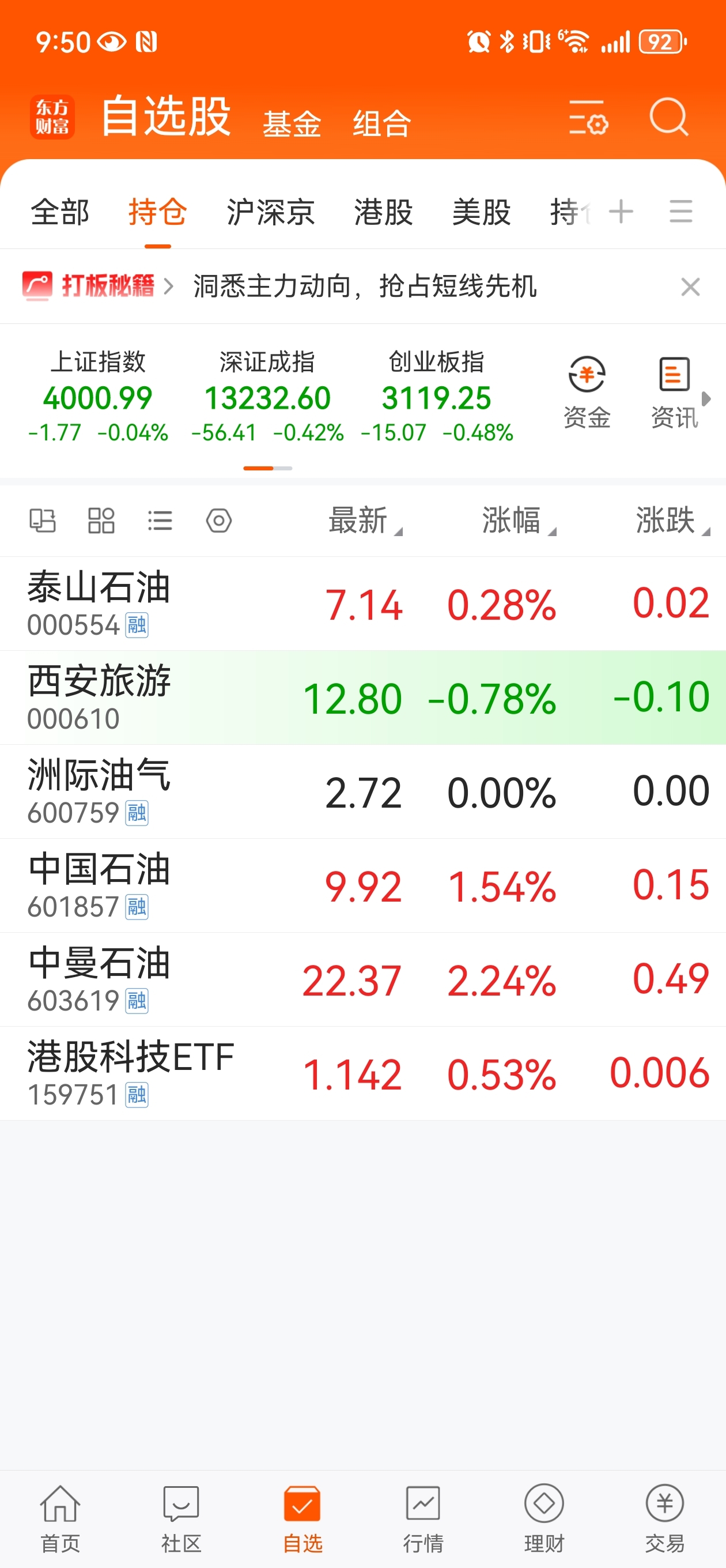 $洲际油气(SH600759)$ 加把劲了,就你一个还绿着。