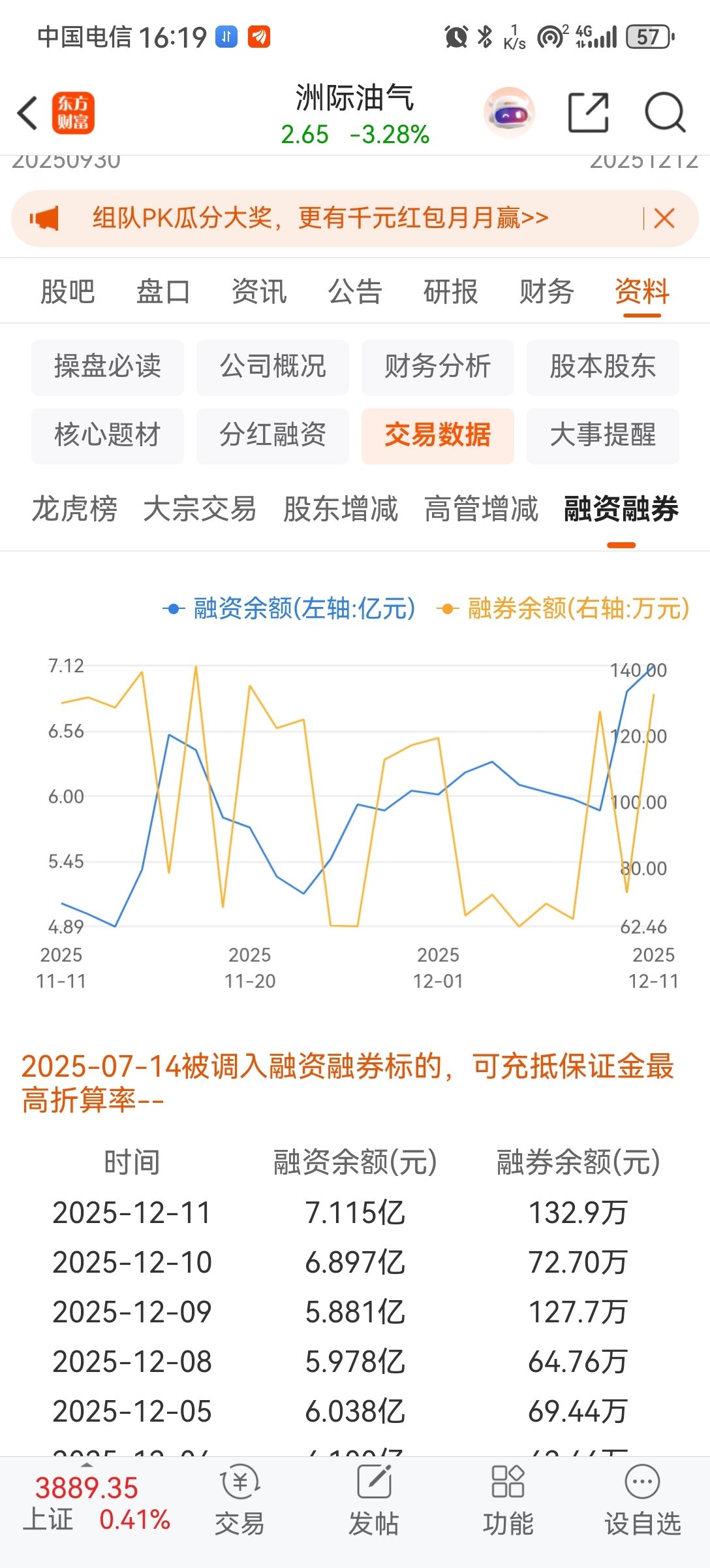 $洲际油气(SH600759)$ 人家能融券做空赚钱,散户有几个能的?看融券余额,是不是下跌刚刚开始?