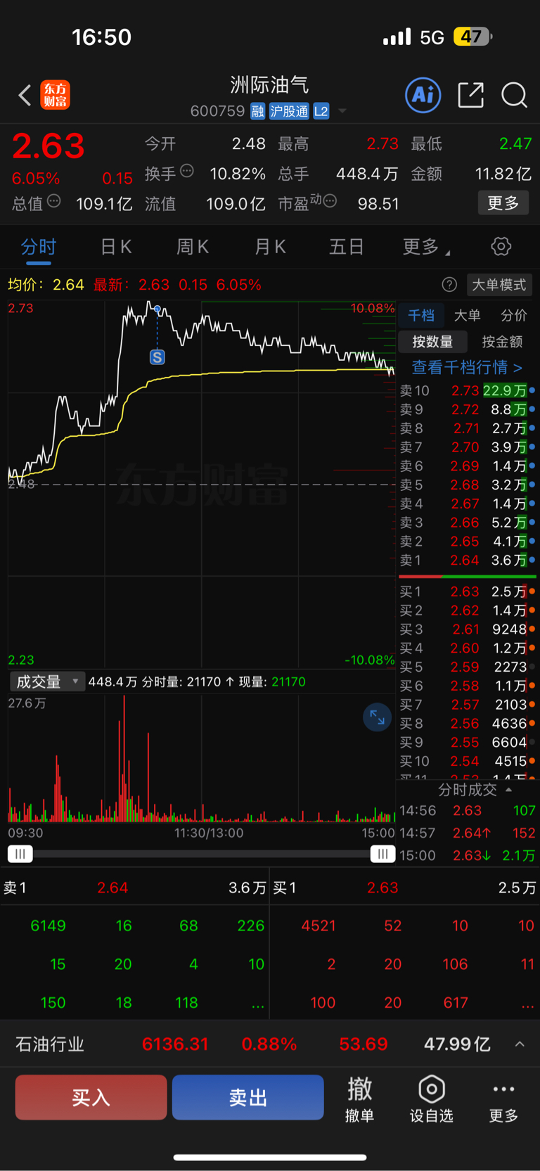 $洲际油气(SH600759)$ 发风,知道尾盘买回来,估计明天的一字板