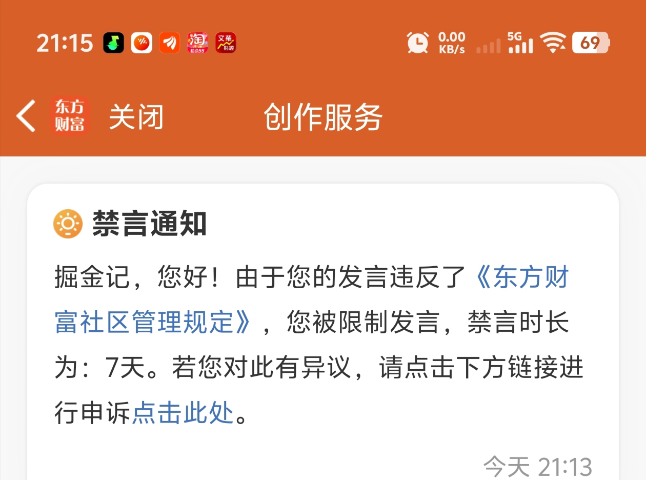 这几天被禁言了。我发了啥呀,我也没发什么呀。不就推了几支票,发表了一下几个期货的