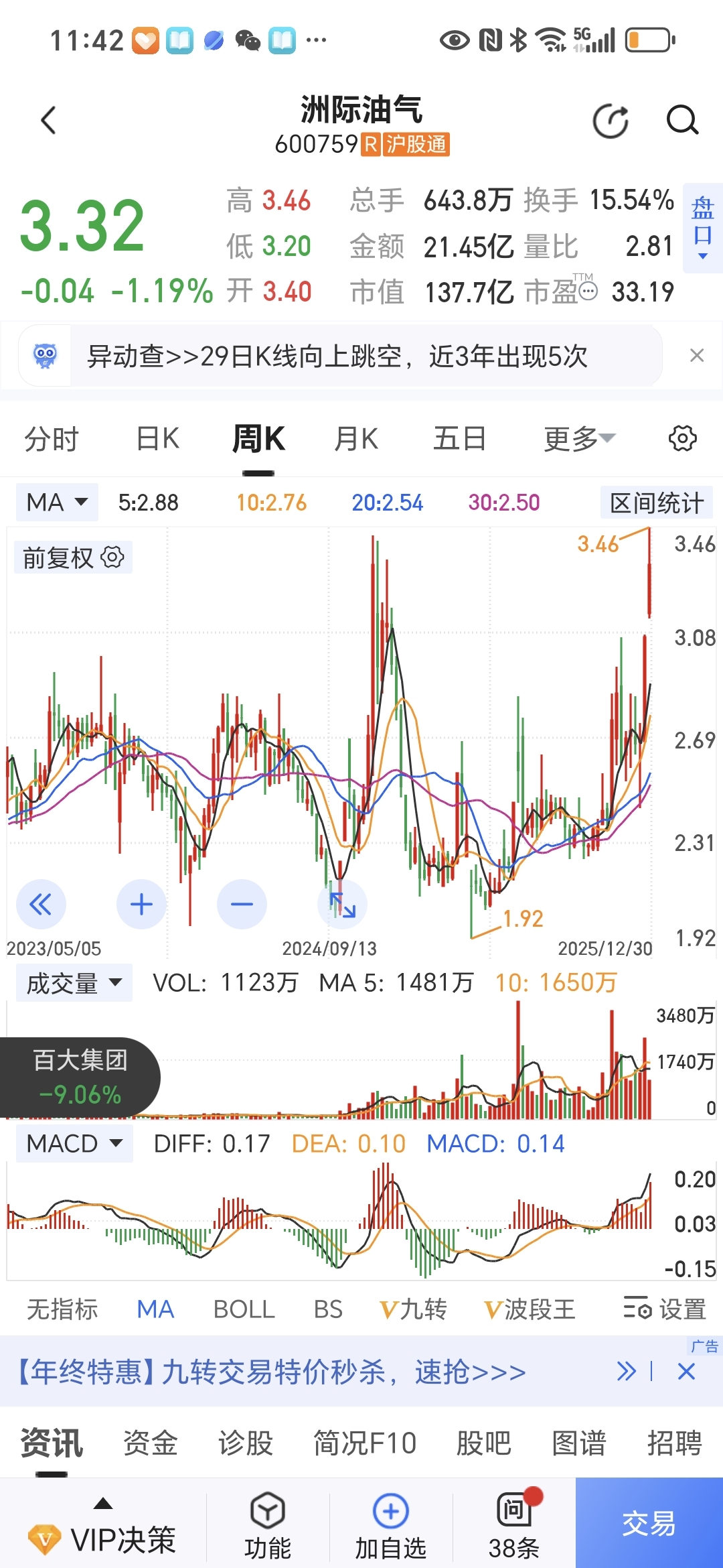 $洲际油气(SH600759)$ 这个位置该洗一洗,不然往上抛压又要多一部分,今天的换手还是比较充分的