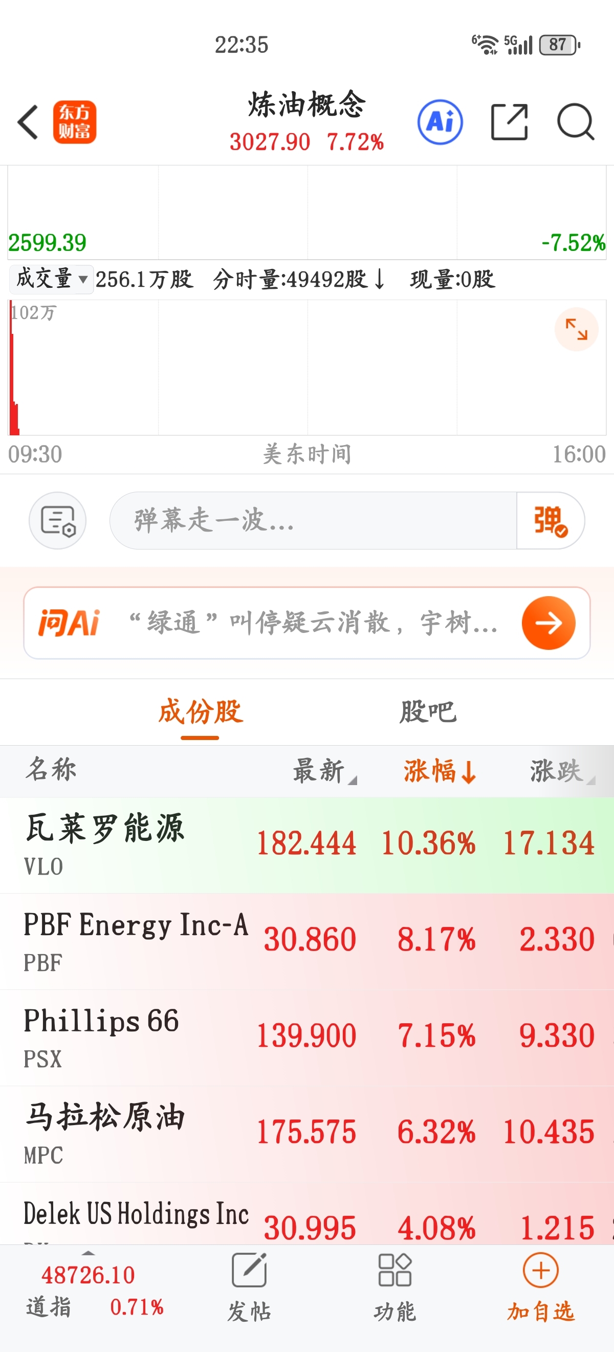 美股炼油板块逆天了。。明天你还能绿,,我就不信了,